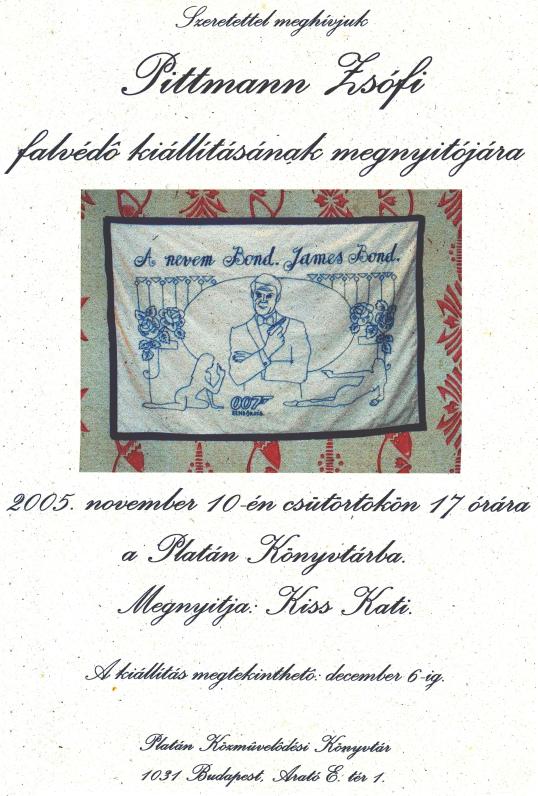 A kiállítást 2005. november 10-én 17 órakor megnyitotta: Kiss Kati.