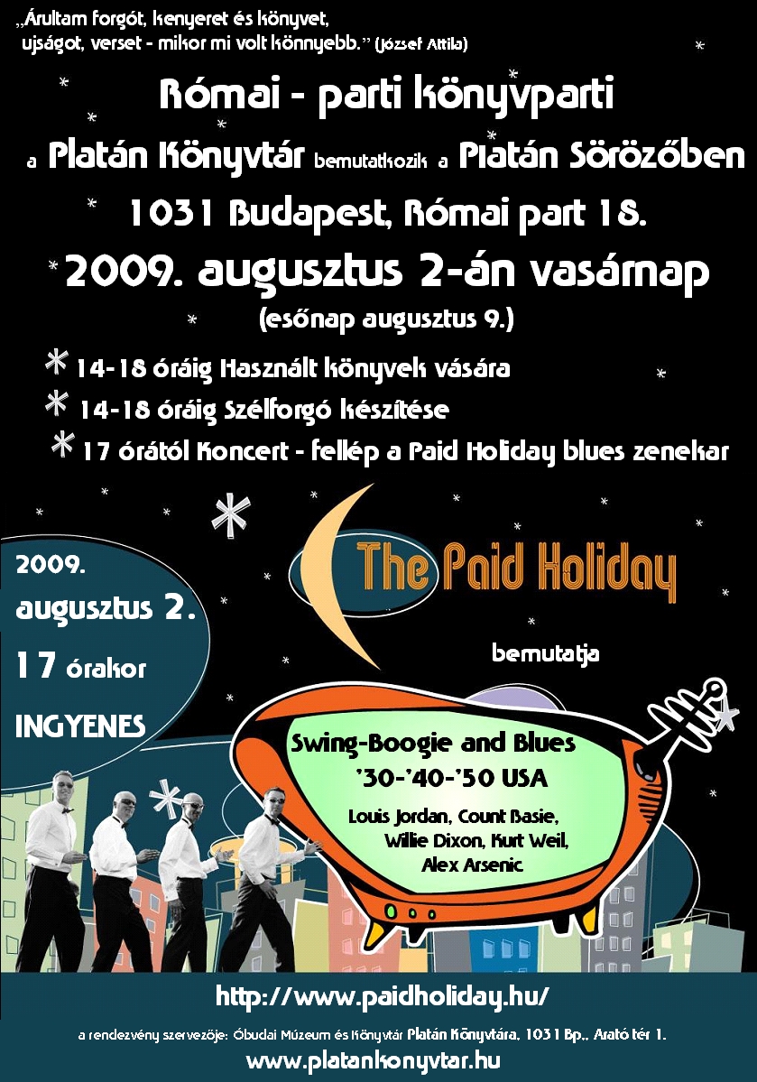 - 17 órától koncert - fellép a Paid Holiday blues zenekar