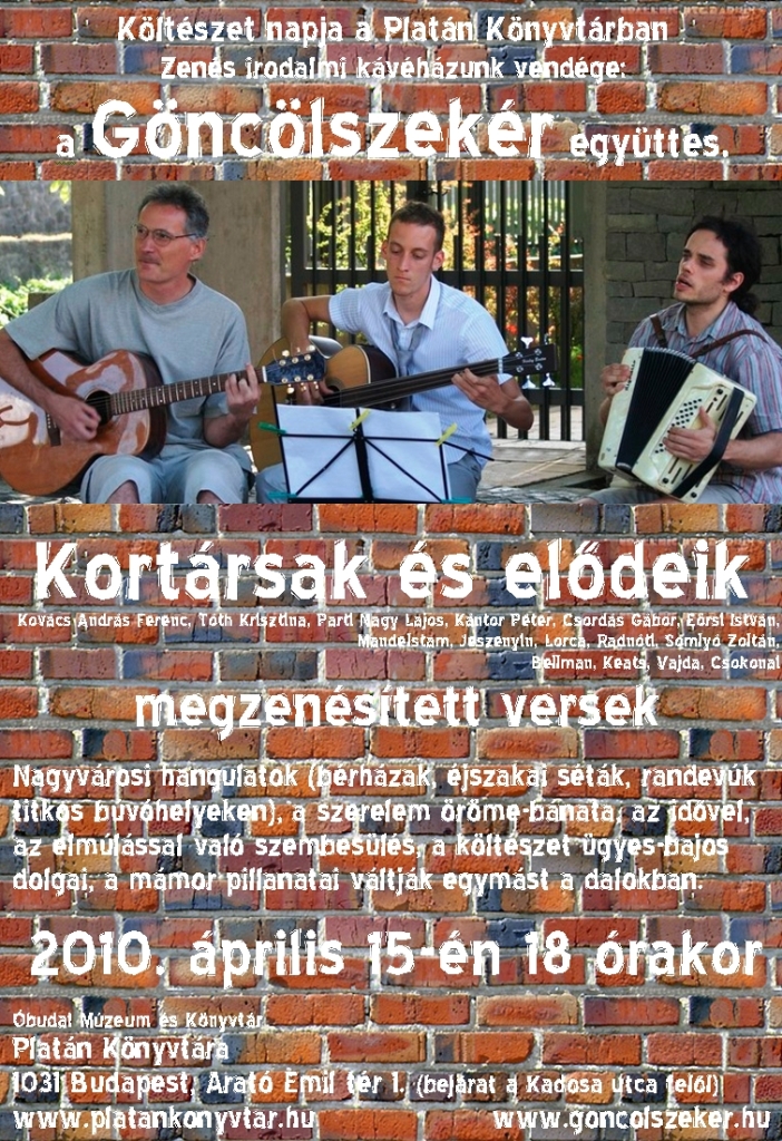 A Göncölszekér együttes költészet napi koncertje a Platán Könyvtárban