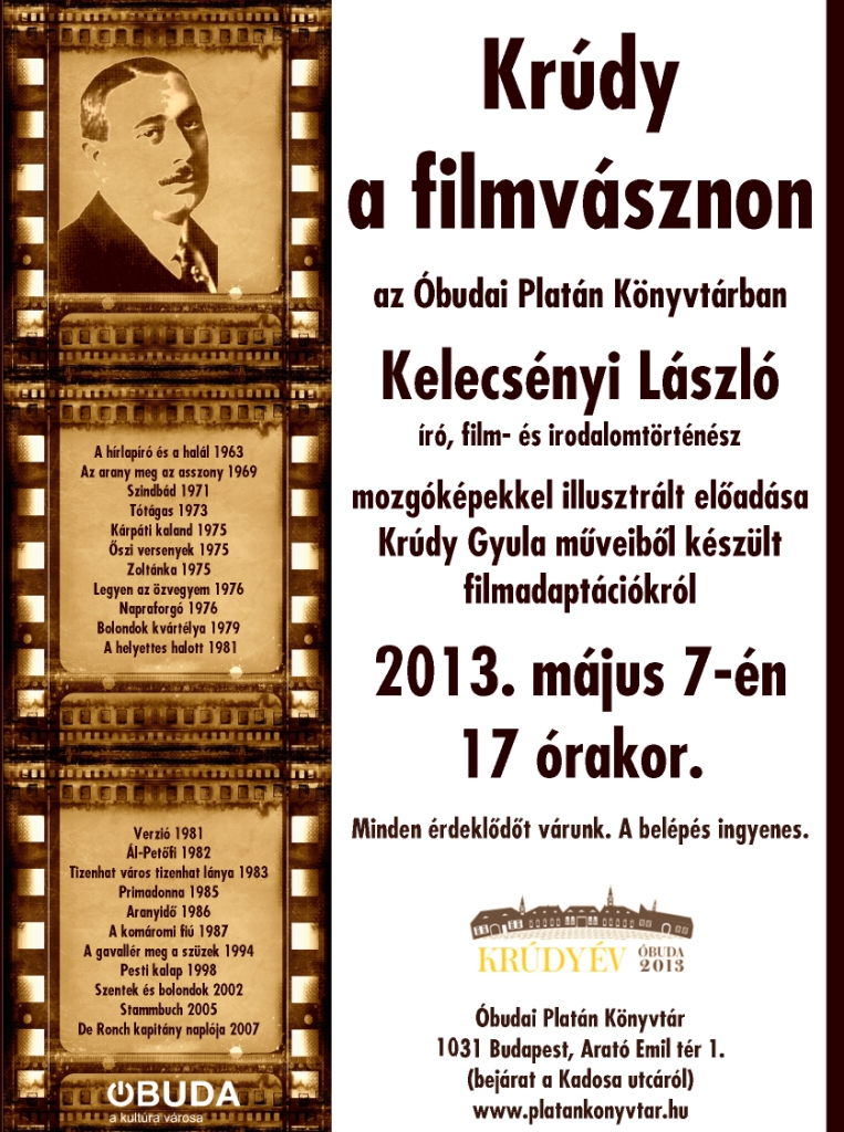 Kelecsényi László író, film- és irodalomtörténész mozgóképekkel illusztrált előadása Krúdy Gyula műveiből készült filmadaptációkról