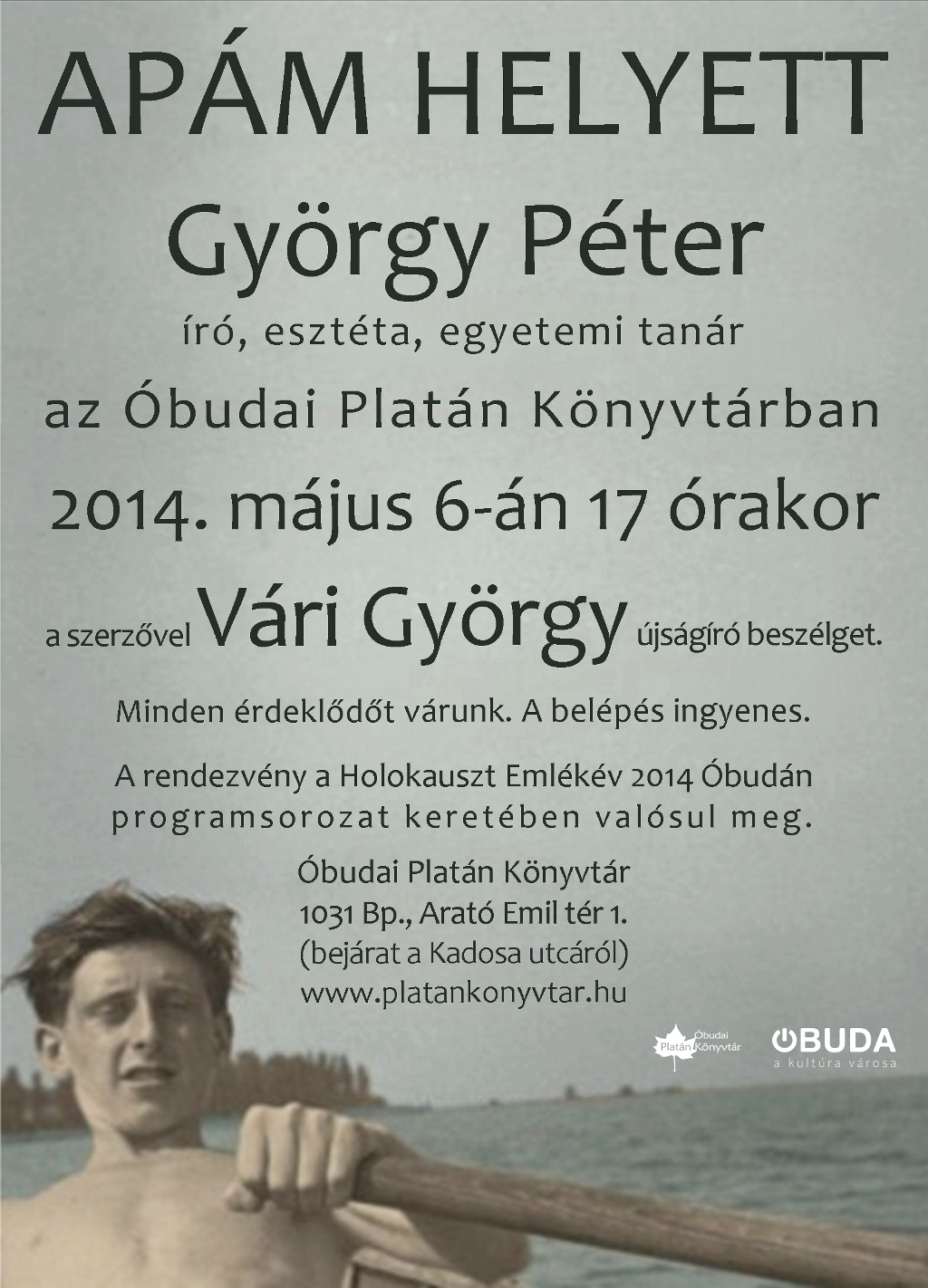 György Péter íróval Vári György újságíró beszélgetett az Apám helyett című könyve kapcsán az Óbudai Platán Könyvtárban. „Az ember annyira szabad, amennyire a kora megengedi” - vélekedett a szerző a Holokauszt Emlékév programján.