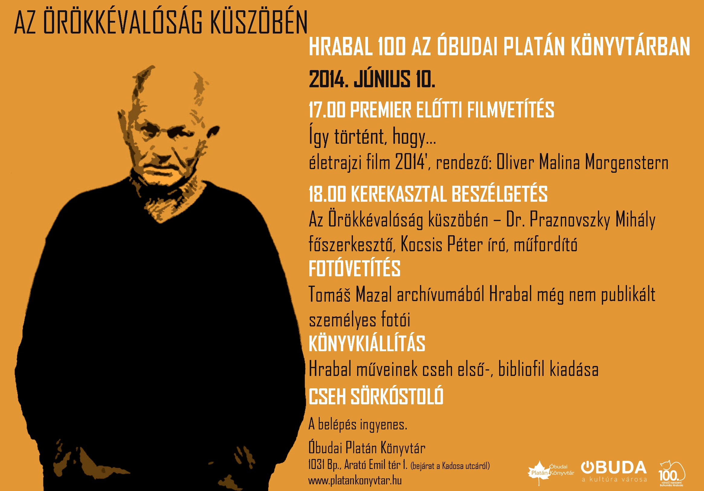Az Óbudai Platán Könyvtár az idei könyvhetet Bohumil Hrabalnak szenteli, születésének 100. évfordulója alkalmából.