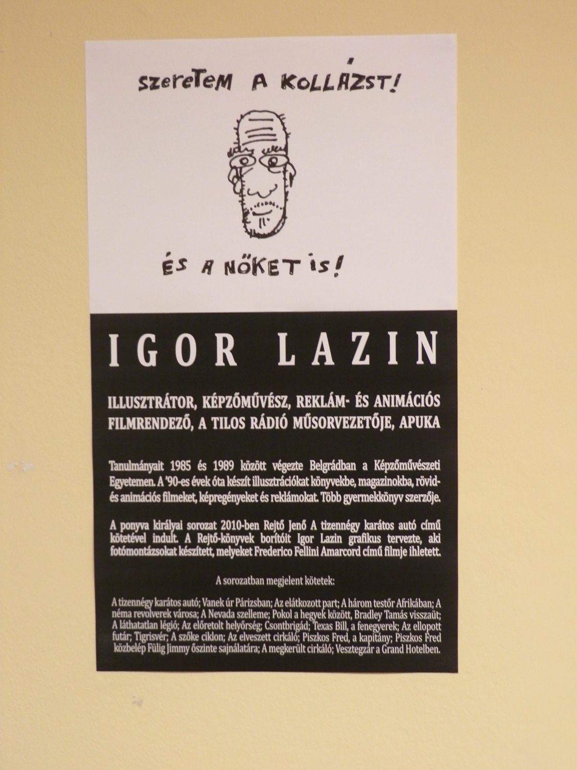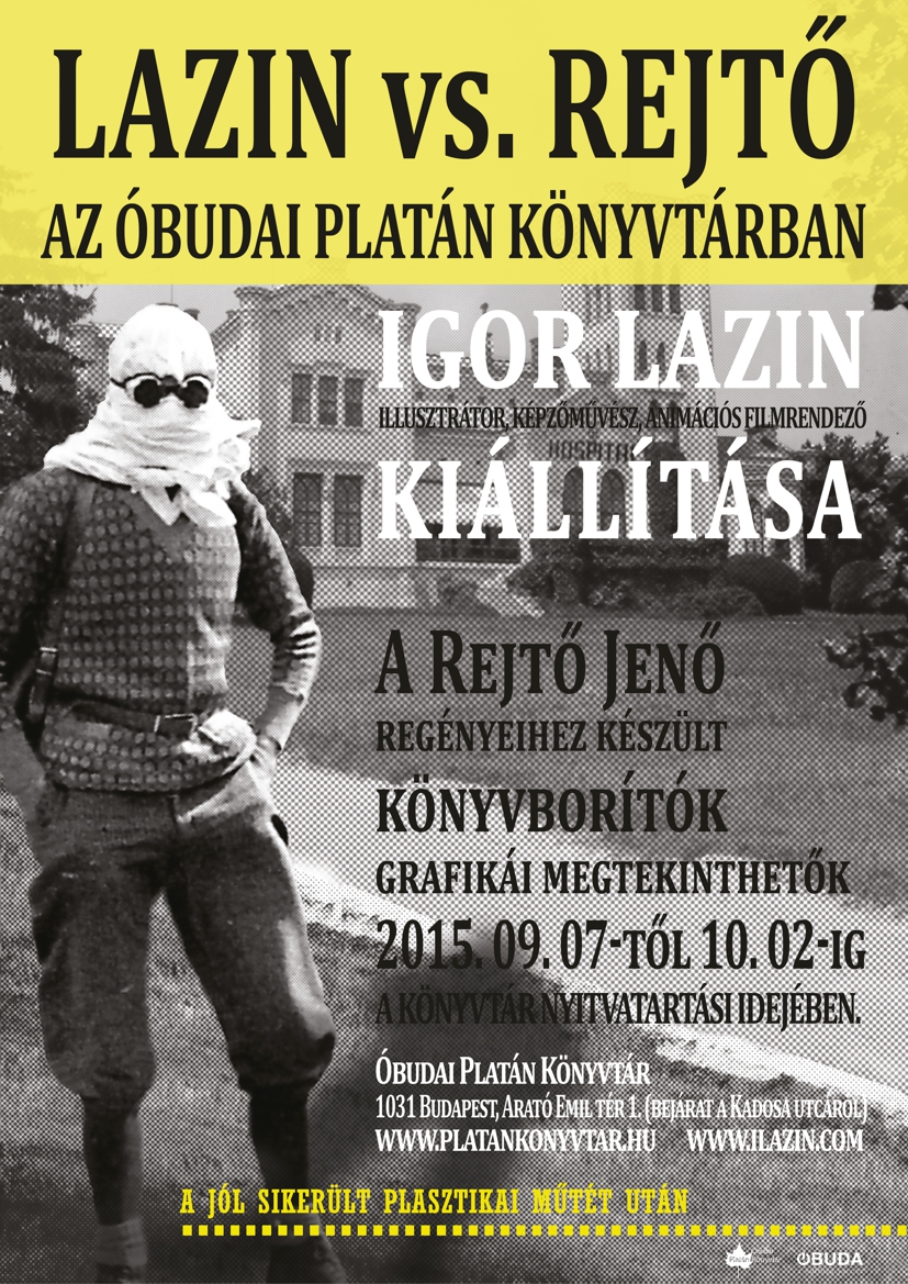 Igor Lazin illusztrátor, képzőművész, animációs filmrendező kiállítása az Óbudai Platán Könyvtárban. A Rejtő Jenő regényeihez készült könyvborítók grafikái megtekinthetők: 2015. szeptember 7-től október 2-ig a könyvtár nyitvatartási idejében.
