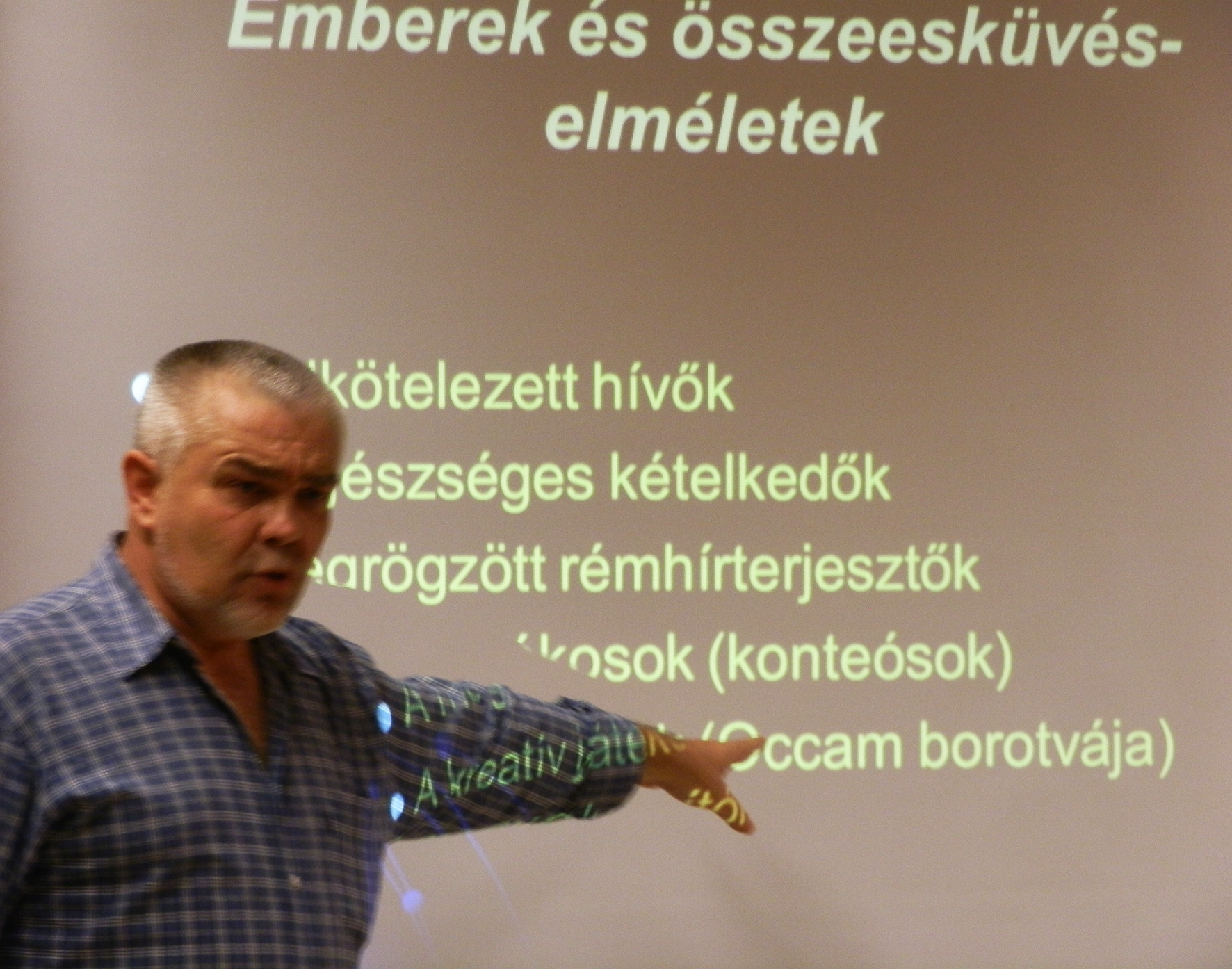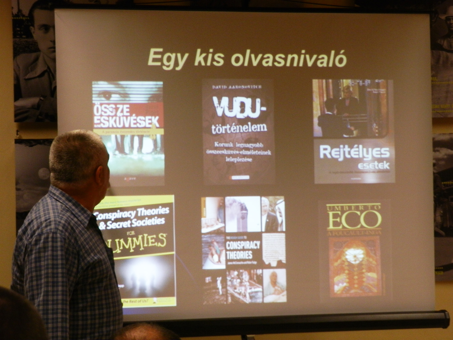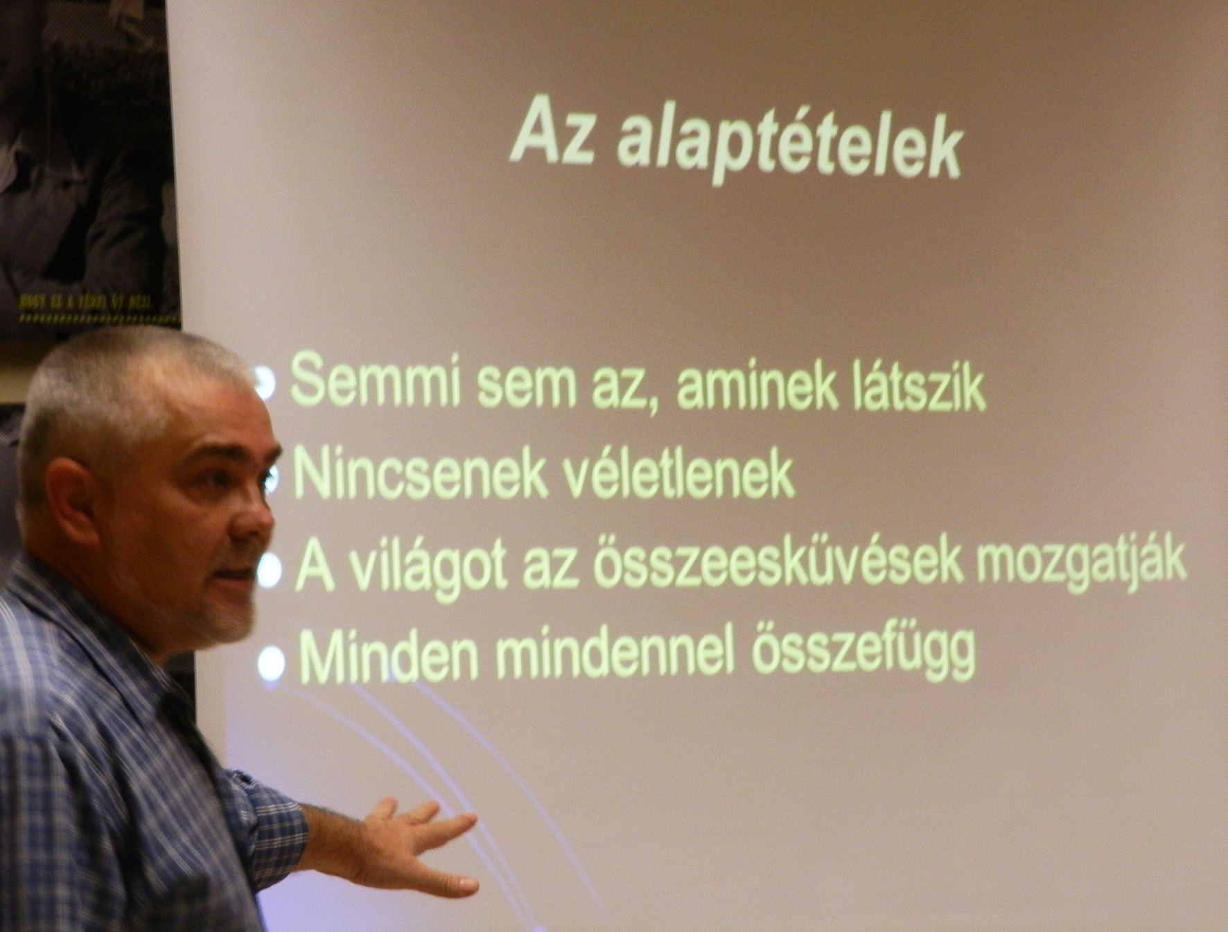 Tóth Tibor [tiboru] vetítéssel egybekötött előadása az összeesküvés-elméletek hátteréről