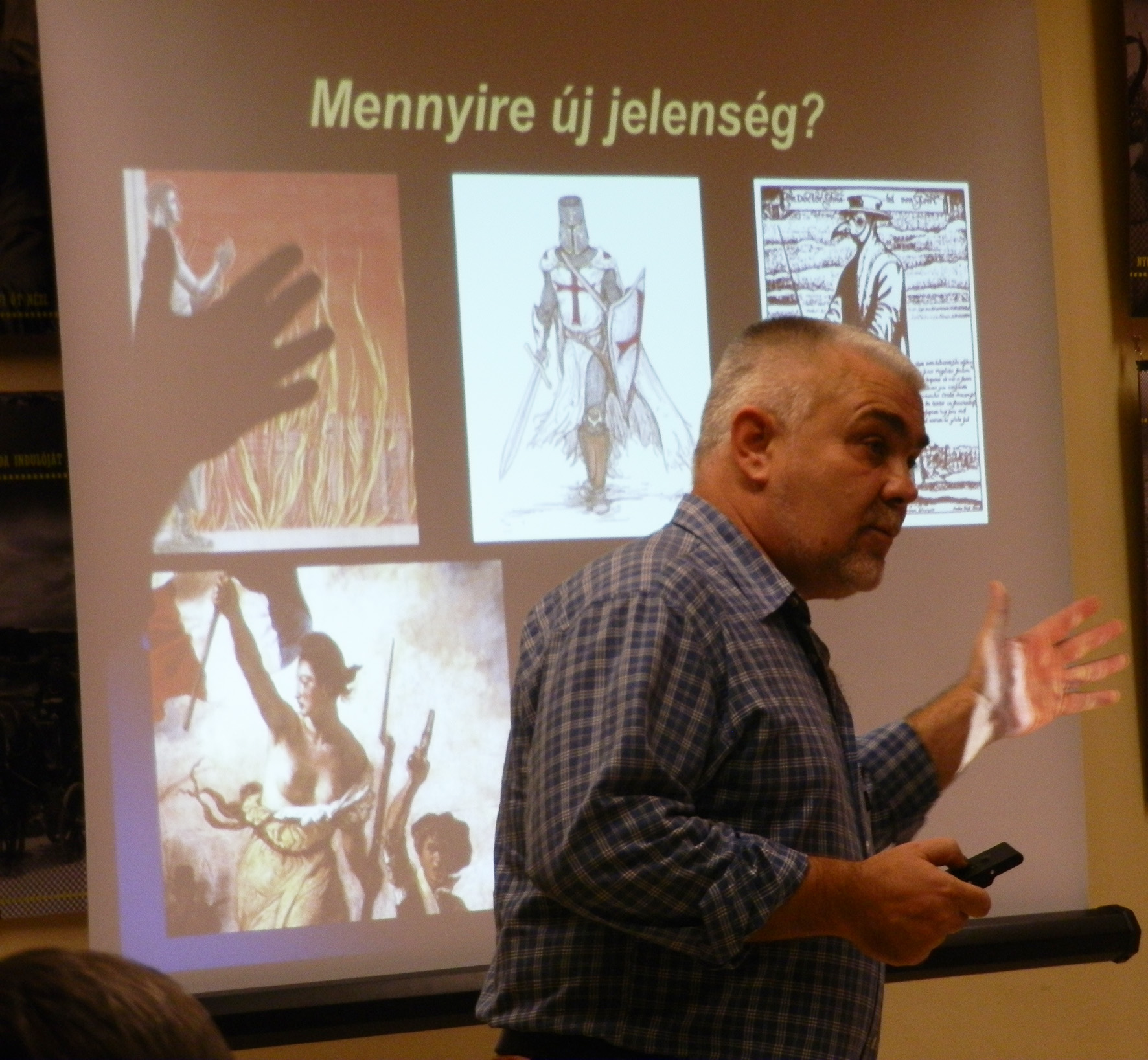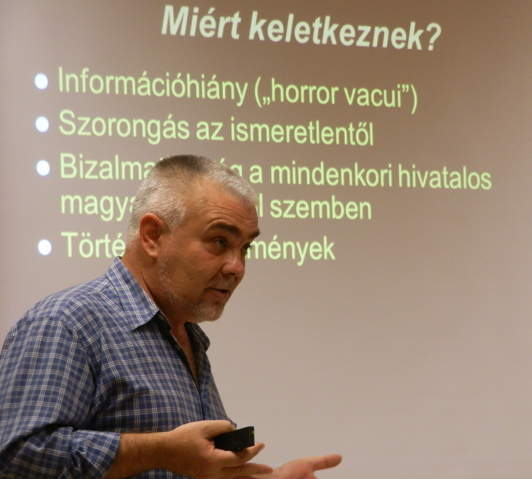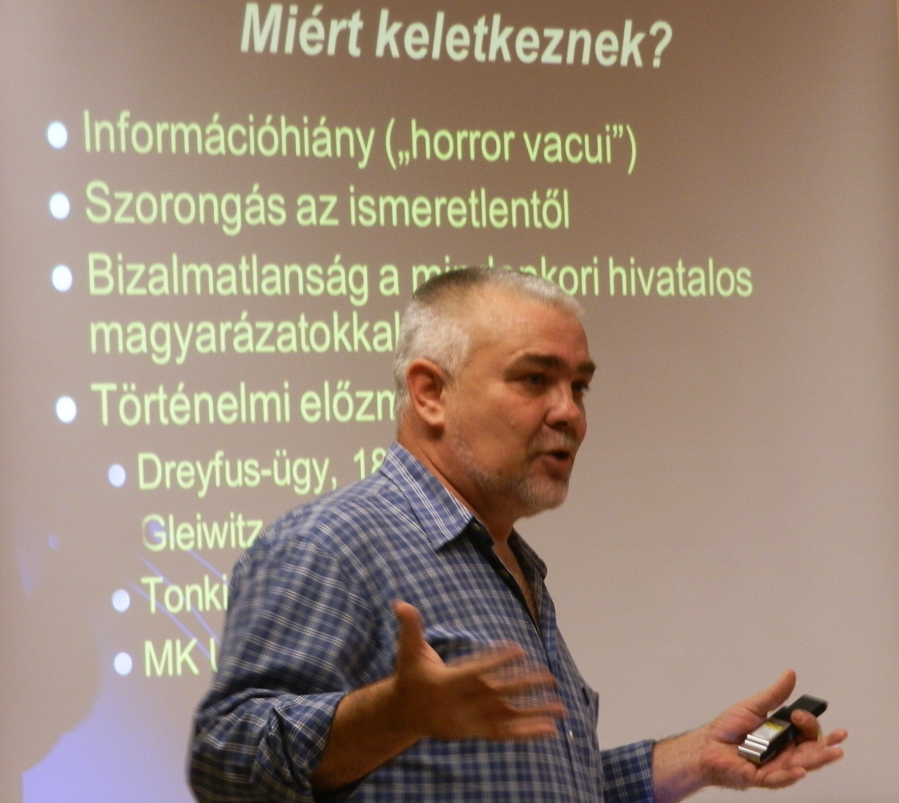Tóth Tibor [tiboru] vetítéssel egybekötött előadása az összeesküvés-elméletek hátteréről