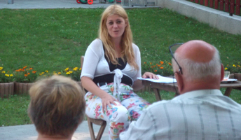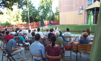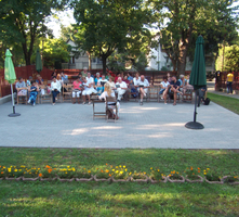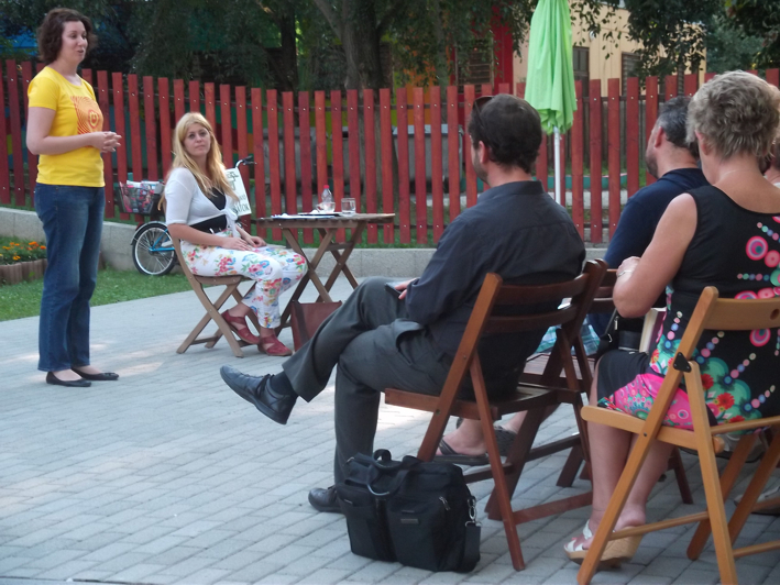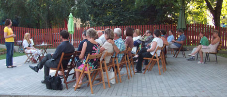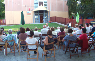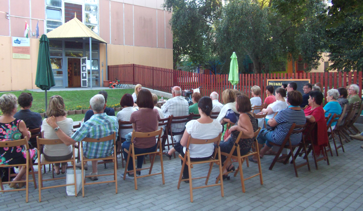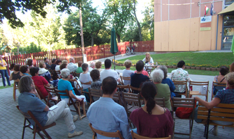 Dr. Tóth Eszter Zsófia történész előadása a könyvtár kertjében
