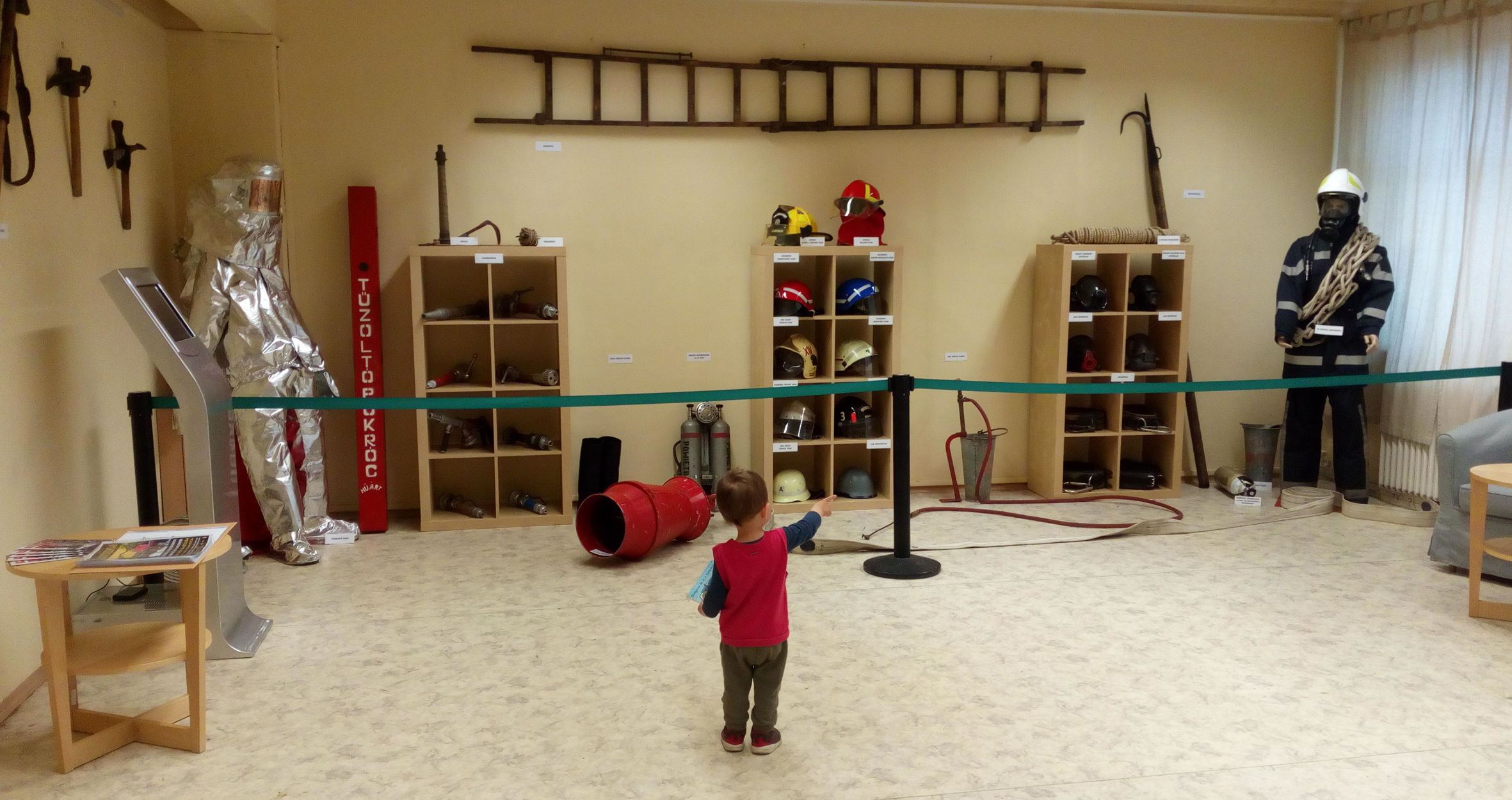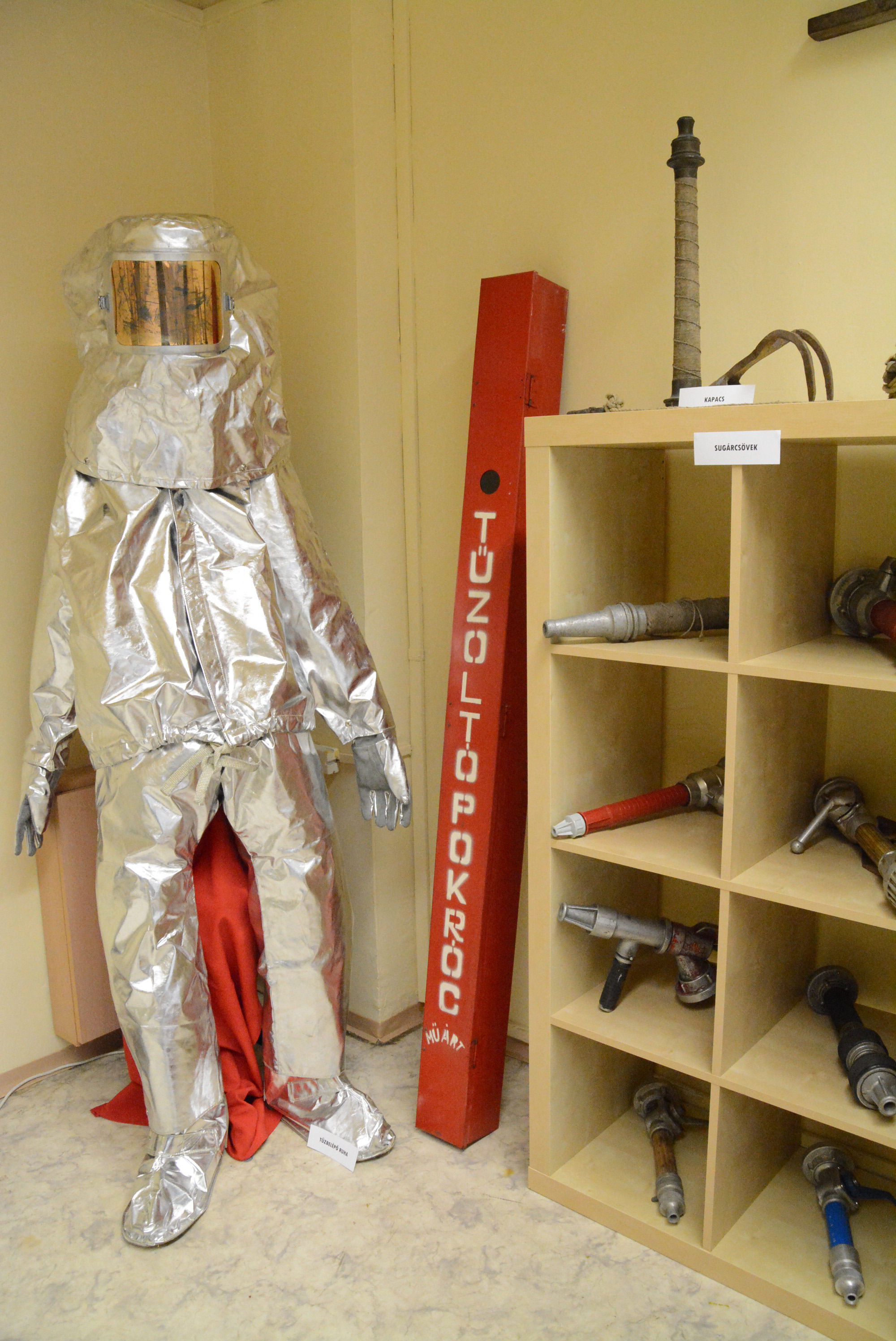 A kiállításon az 1890-es évektől kezdve napjainkig elsősorban a magyar tűzoltó testületek, majd később a tűzoltóságok által használt tárgyak és ruházatok láthatók. Képzeletben több nemzet egyenruháját is magára ölthetik a látogatók, valamint megcsodálhatják a Magyarországon rendszeresített sisakokat, tiszti és legénységi bontóbaltákat, mászóöveket, technikai eszközöket is.