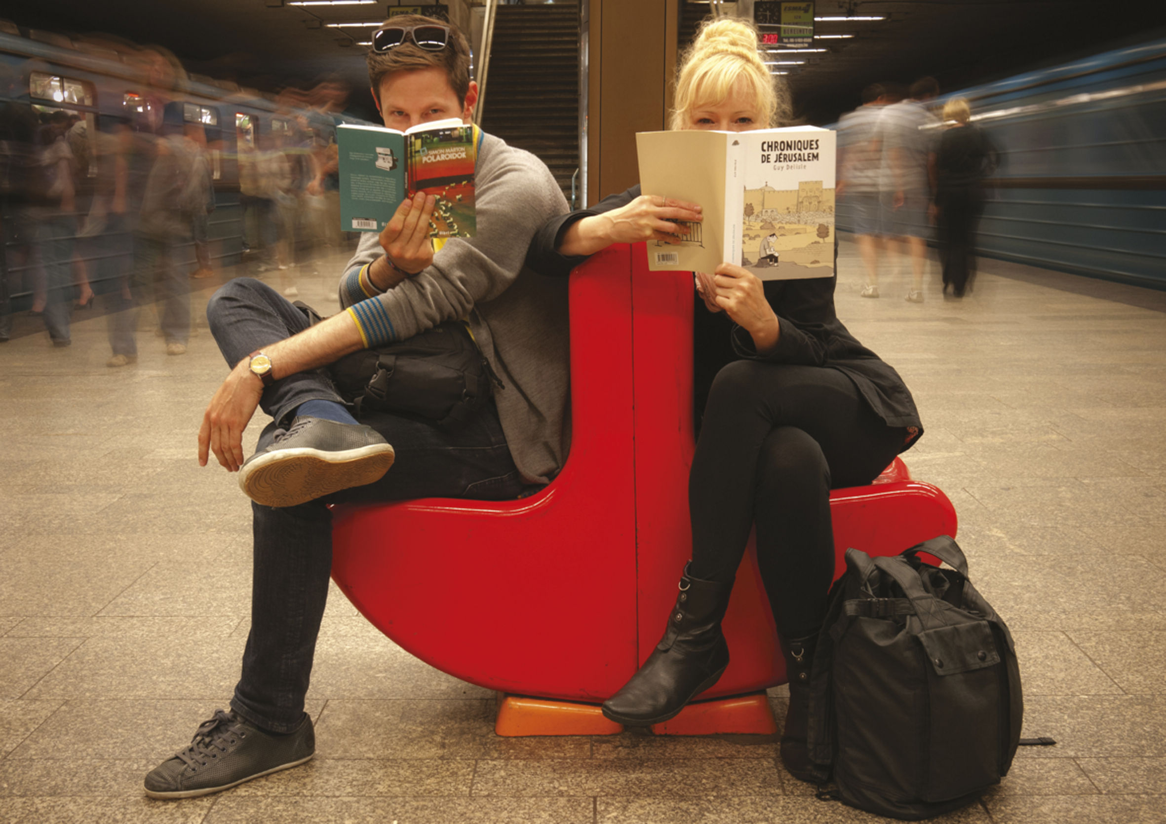 Az Utazó Olvasó Facebook-közösséget Takács Eleonóra és Juhász István hozta létre 2012-ben. Azóta számtalan képet készítettek tömegközlekedési eszközökön olvasó emberekről, akik így zárják ki a külvilágot utazás közben.