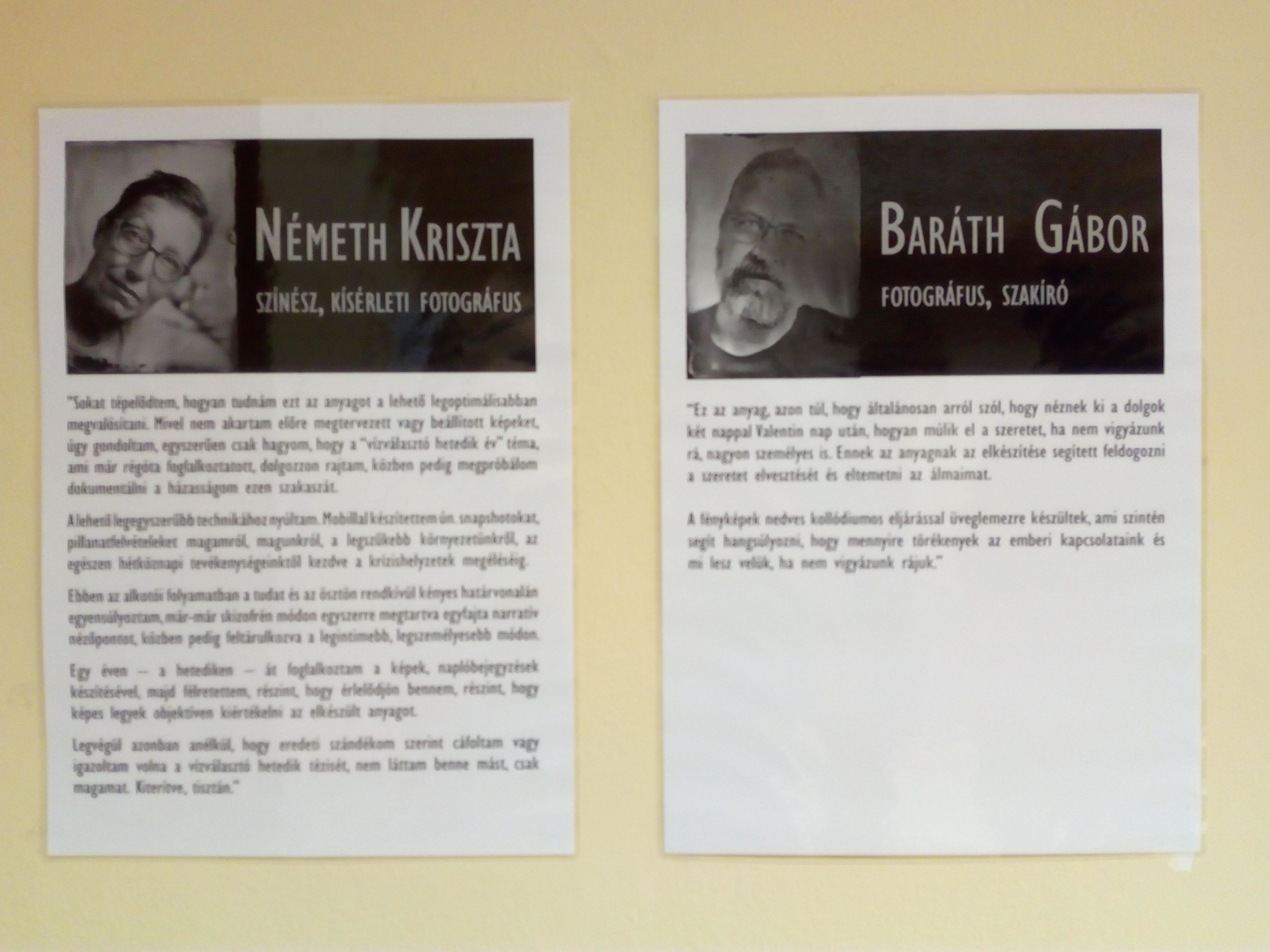 Kriszta és Gábor képei betekintést engednek belső világukba. A fotókat és a személyes környezetet idéző installációt szemlélve megéljük a veszteség, a gyász érzését, de már rejtve az a szabadság is jelen van képek között, amit egy hosszú (és már egy ideje nem túl jól működő) kapcsolat végén érezhetünk.