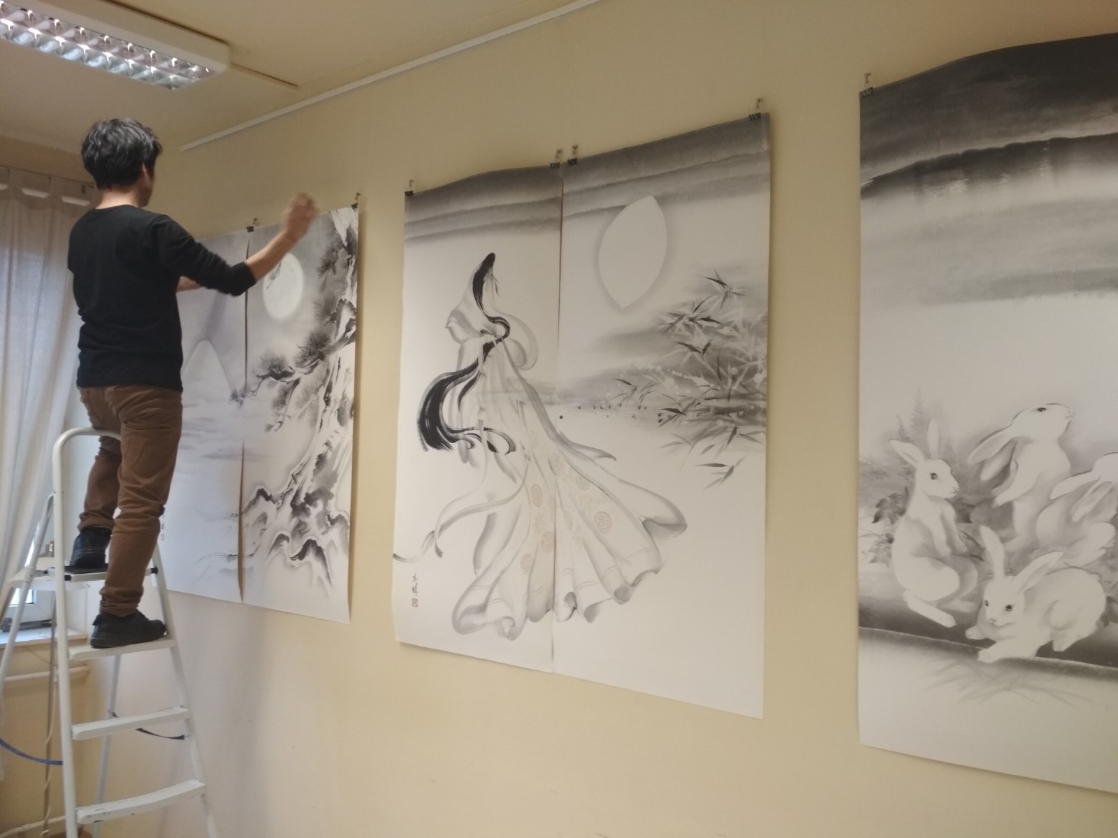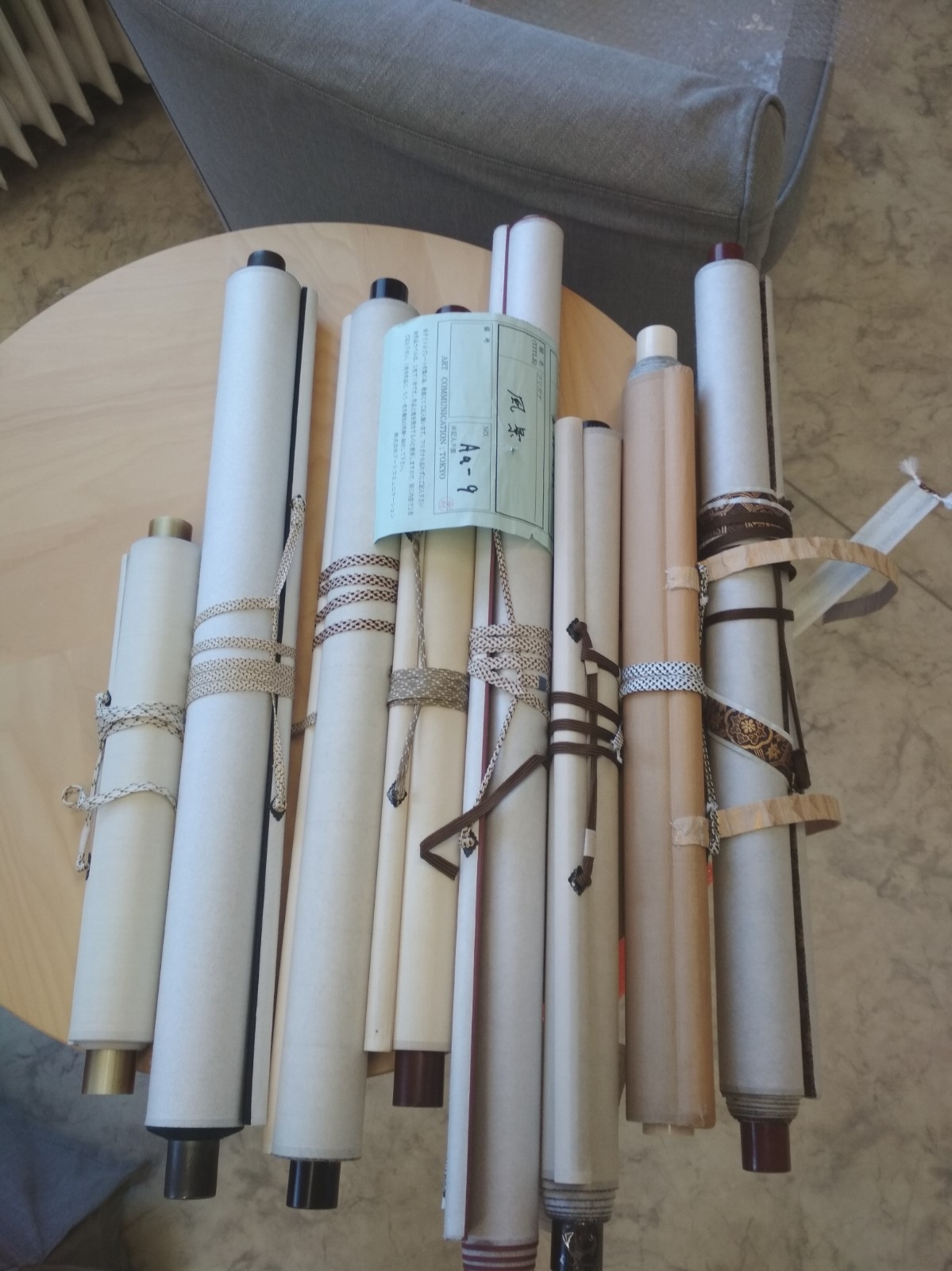 A japán festészet technikája és bemutatási módja gyökeresen eltér a nyugatitól. Nálunk az olajjal, esetleg akrillal vászonra, fára festett képek dominálnak, illetve a papír alapú akvarellek. Az elkészült munkákat keretbe foglaljuk és a falra akasztjuk, hónapokig, évekig. Ezzel szemben Japánban az 1870-es évek előtt kizárólag papírra vagy selyemre festettek tussal és színes pigmentekkel, melyeket vízzel kevertek, vagy lakkal és egyéb szerves anyagokkal rögzítettek a hordozó felületén. A távol-keleti népek ideografikus írása (egy jel = egy gondolat) következtében a shodō („az ecset útja”), a szépírás művészete és a képek festése sosem vált el egymástól élesen, sőt, gyakran kép és írás együtt alkotja a műalkotást, ahol a poézis és a vizualitás egymás egyenrangú partnerei. A képeket az épületek papír tolóajtajaira (fusuma), paravánokra, legyezőkre festették, ezáltal gyakorlati funkcióval is ellátták őket. Emellett hosszanti, vagy vízszintes papír- és selyem ívekre is készültek képek, melyeket hordozóra erősítettek és feltekercseltek. Azokat a műveket, amelyeket egyéni nézegetésre, „vizuális olvasásra” szántak, vízszintes tekercsképekké (emakimonókká) alakították át, míg a magányos vagy társas (akár meditatív) szemlélésre szánt képeket olyan hosszúkás formátumú hordozóra montírozták fel, amelyet a tetején és alján lévő rudak segítségével könnyedén szét- és össze lehetett tekerni, s a falra akasztani.