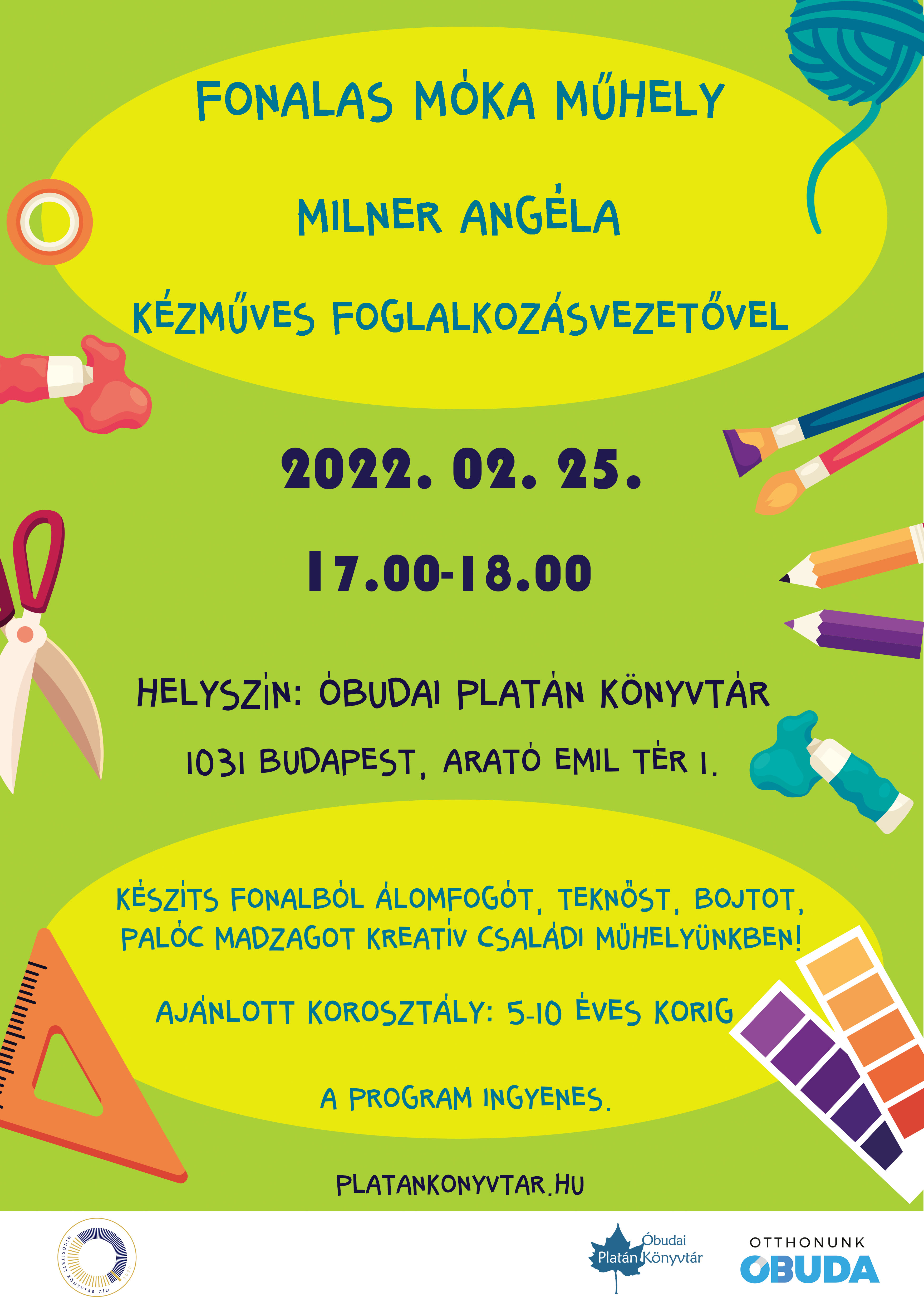Készíts fonalból álomfogót, teknőst, bojtot, palóc madzagot kreatív családi műhelyünkben! Az elkészítésében Milner Angéla foglalkozásvezető segít.
