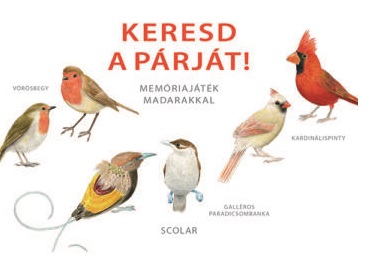 Párosítsuk össze a világ különböző tájairól származó 25 madárfaj hímjeit és nőstényeit ábrázoló kártyákat! A madárfajokat a mellékelt kis füzetben található leírások mutatják be röviden. Ez a gyönyörűen illusztrált memóriajáték nemcsak gyerekek, hanem minden madárkedvelő ember számára kiváló ajándék. A 25 madárfaj: tarka vércse, vörös szirtimadár, lunda, fehérfejű rétisas, gyöngybagoly, kék szajkó, kék cinege, jégmadár, császárpingvin, fekete rigó, vörösbegy, aranyfácán, rózsás flamingó, házi veréb, kacagójancsi, galléros paradicsombanka, tőkés réce, bütykös hattyú, kardinálispinty, strucc, vörösfejű küllő, bankivatyúk, tüzestorkú kolibri, vörös ara, vadpulyka. A játékot 6 éves kortól ajánljuk. Forrás: https://www.scolar.hu/