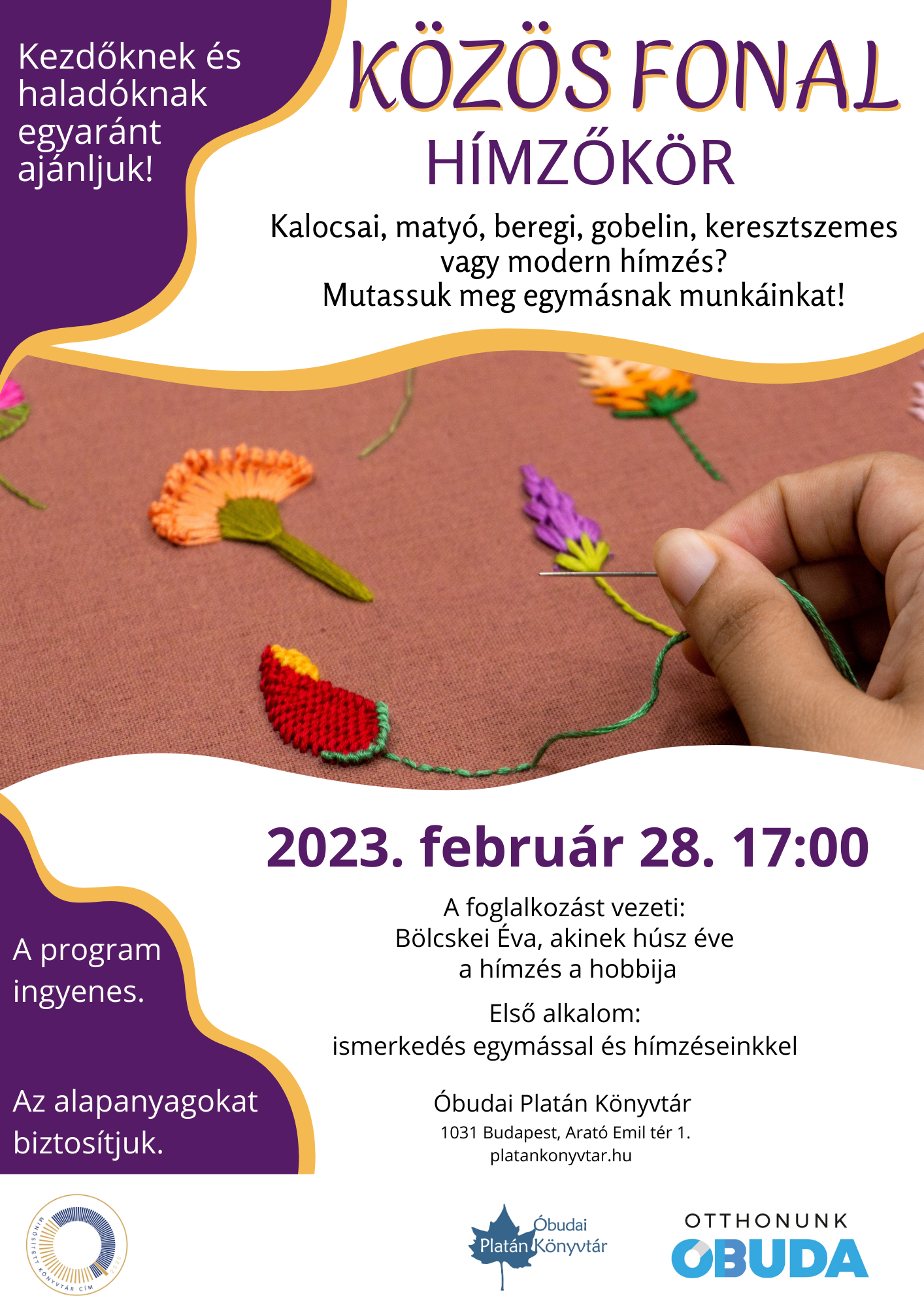Várjuk a hímzés iránt érdeklődőket, kezdőket és haladókat egyaránt!