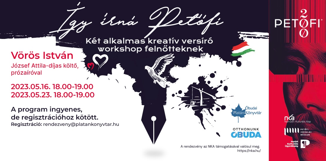 Vörös István költő, író műfordítóval együttműködve két alkalomból álló kreatív-versíró workshopot hirdetünk. A kurzus nem a tökéletes rímek kereséséről szól, hanem a gondolatok egyéni kifejezéséről. Tanulnál a legnagyobbaktól? Most itt az alkalom!