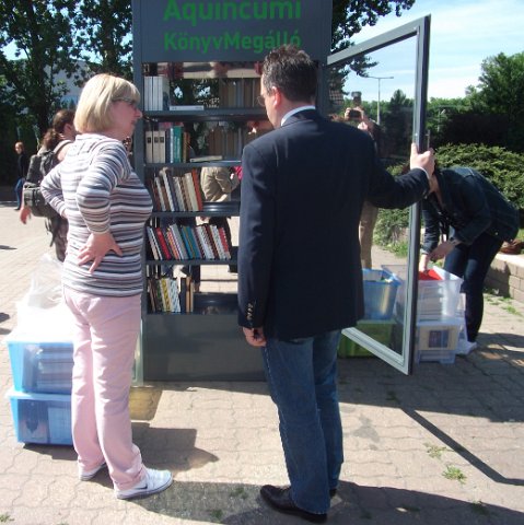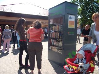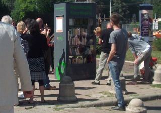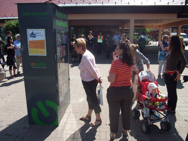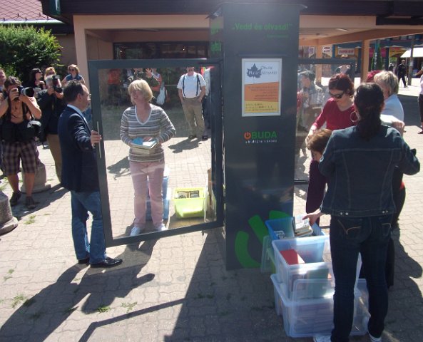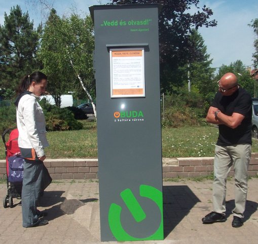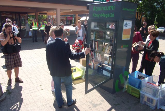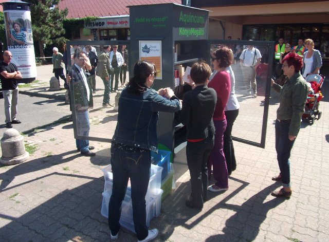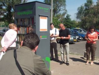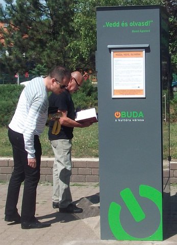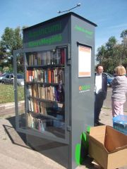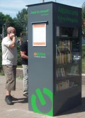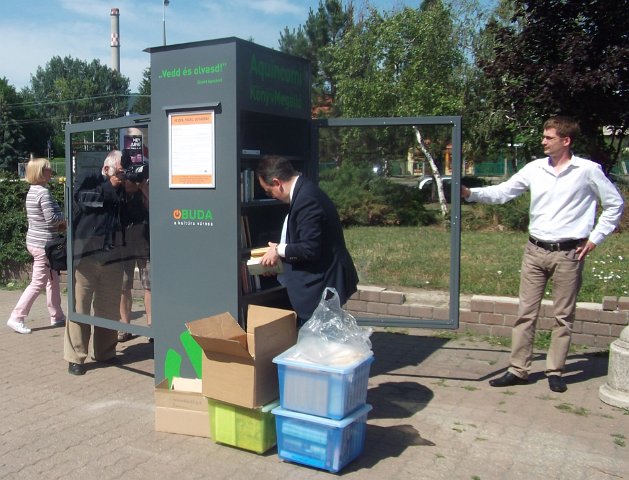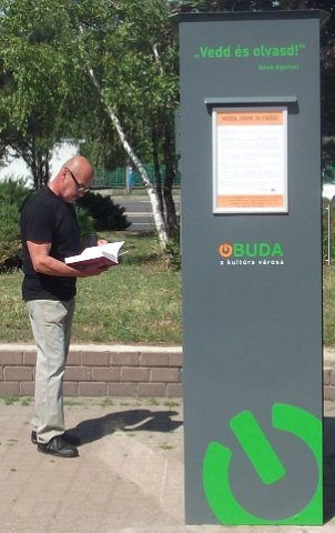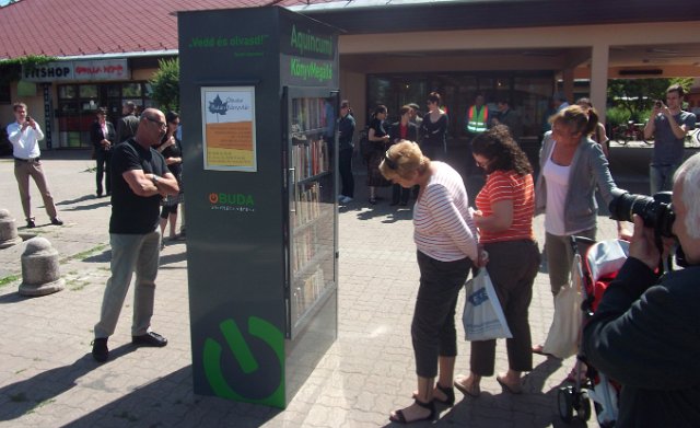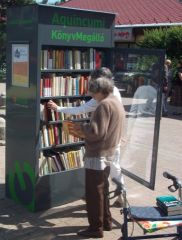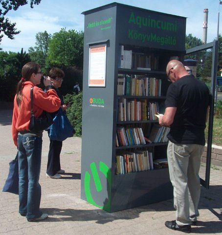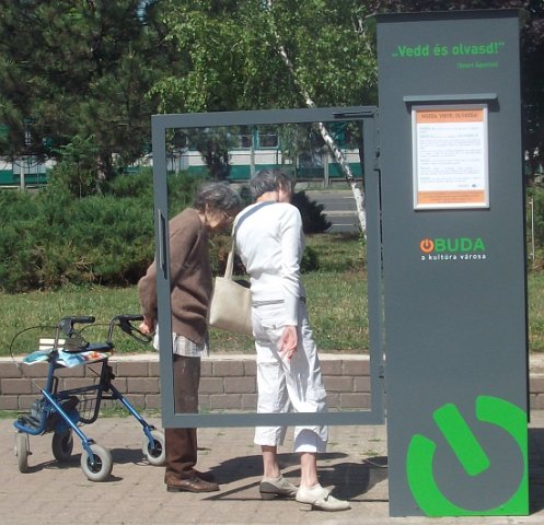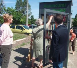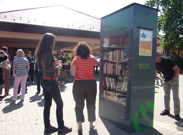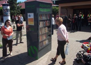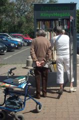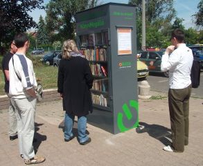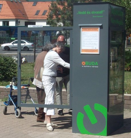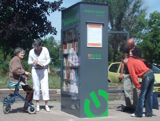 A mindig nyitva álló könyvszekrény, ahonnan bárki kivehet, és betehet könyveket.