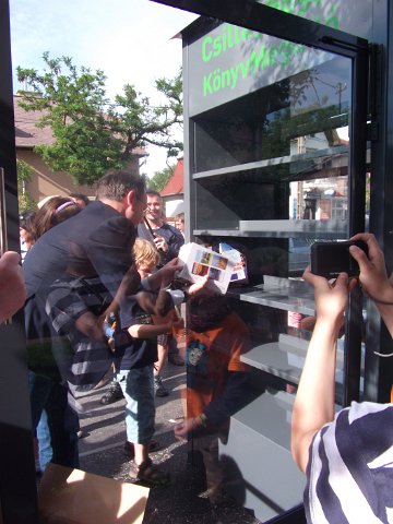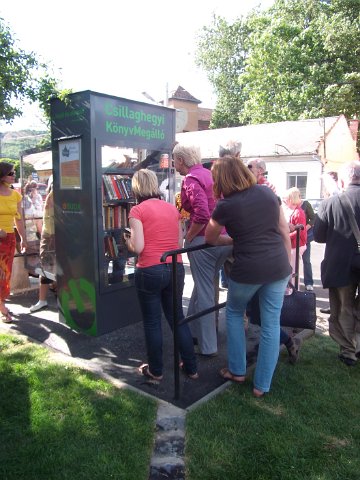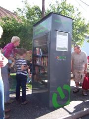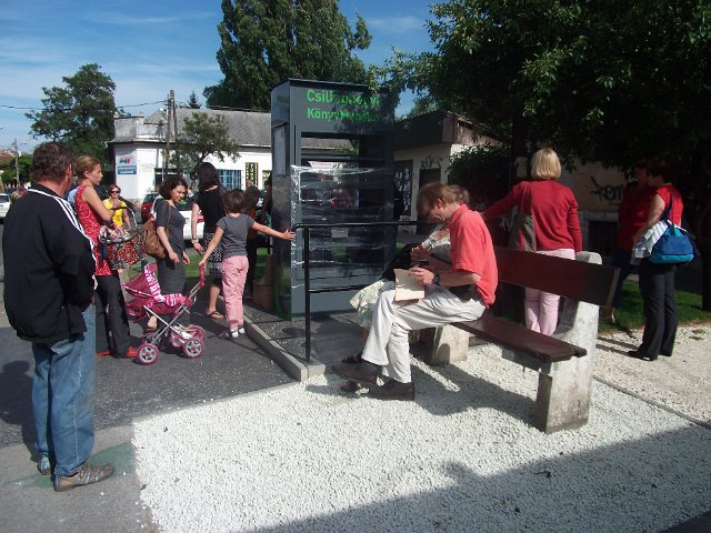 A mindig nyitva álló könyvszekrény, ahonnan bárki kivehet, és betehet könyveket.
