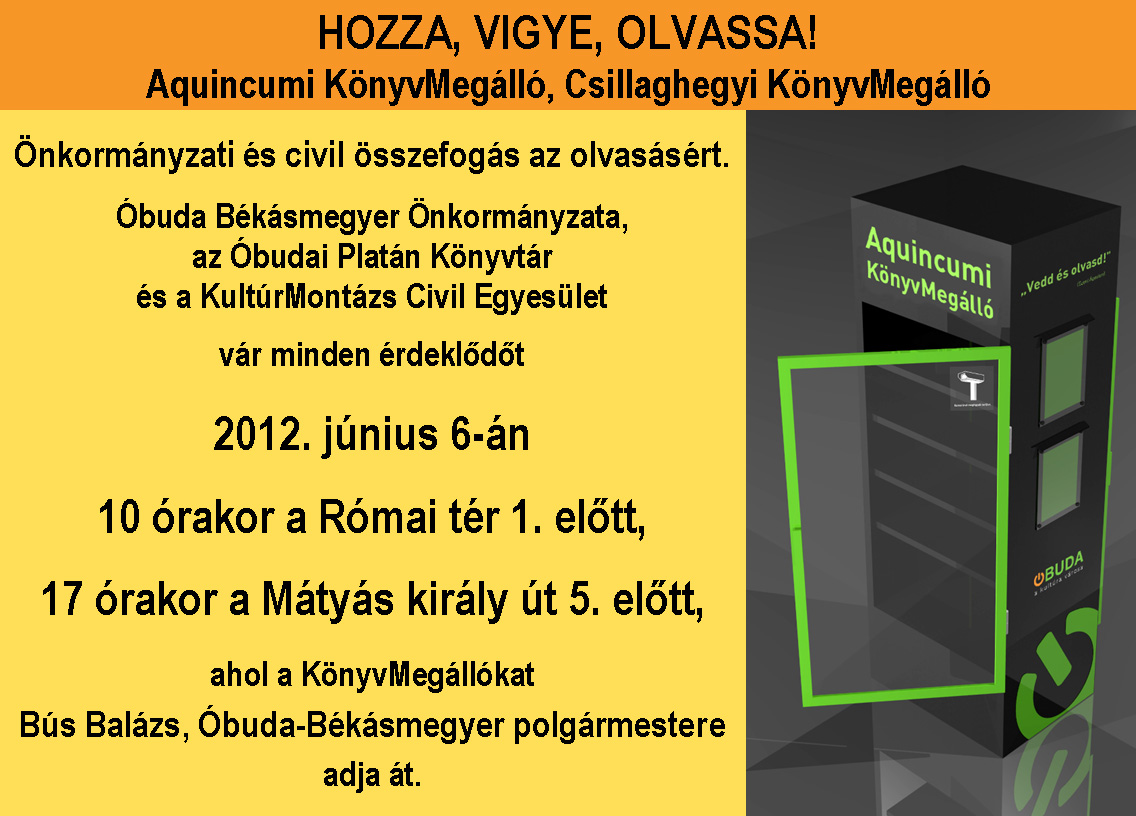 Óbuda Békásmegyer Önkormányzata, az Óbudai Platán Könyvtár és a KultúrMontázs Civil Egyesület összefogása az olvasásért.