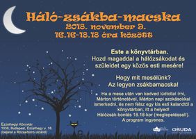 Este a könyvtárban. Hozd magaddal a hálózsákodat és szüleidet egy közös esti mesére! Hogy mit mesélünk? Az legyen zsákbamacska!