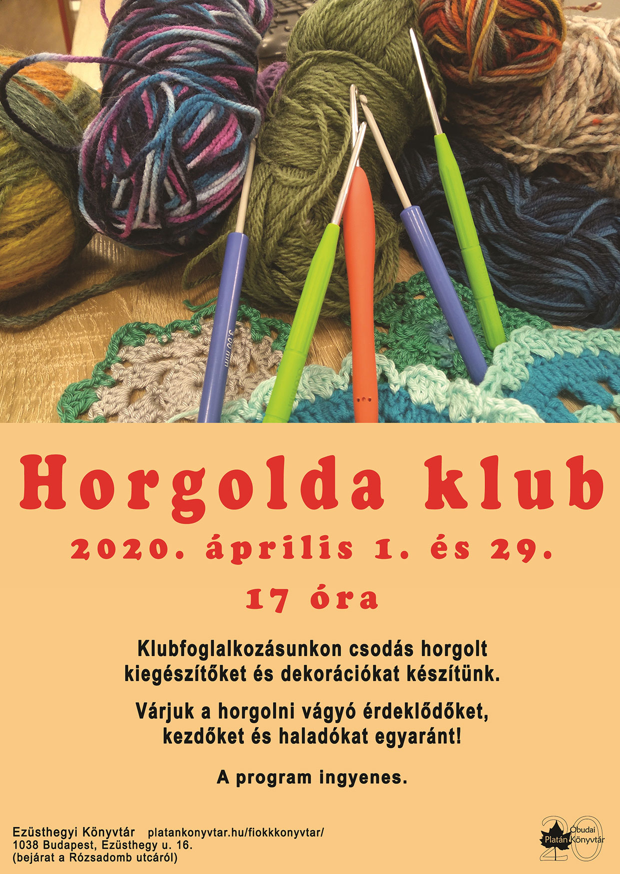 Várjuk a horgolni vágyó érdeklődőket, kezdőket és haladókat egyaránt!