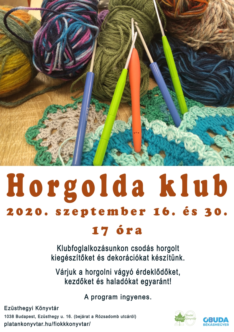 Klubfoglalkozásunkon csodás horgolt kiegészítőket és dekorációkat készítünk. Várjuk a horgolni vágyó érdeklődőket, kezdőket és haladókat egyaránt!