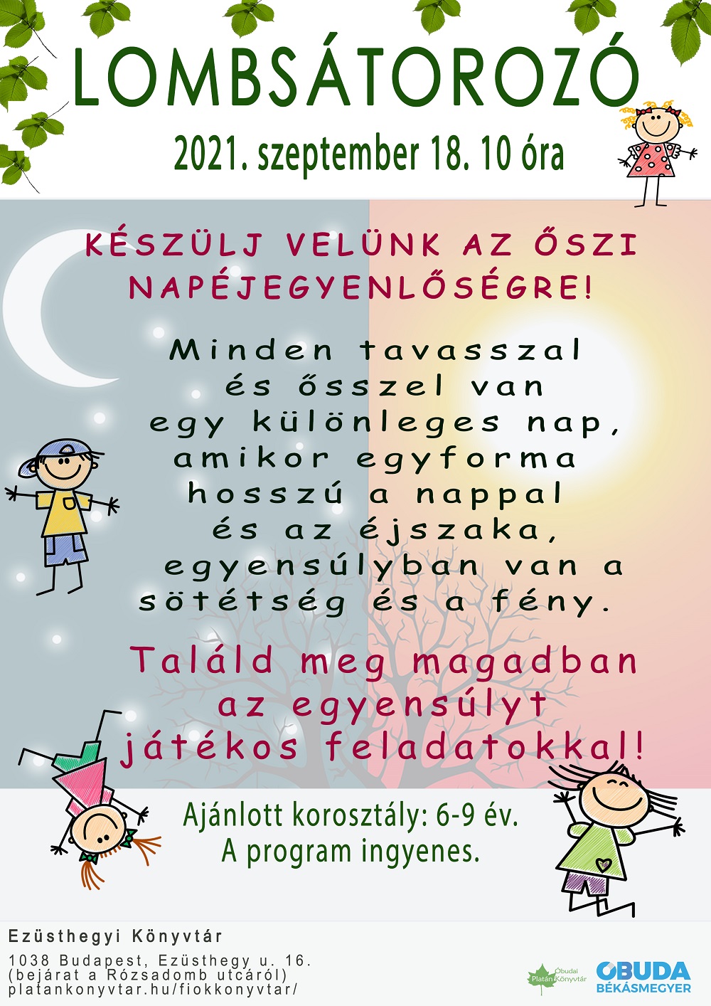 Minden tavasszal és ősszel van egy különleges nap, amikor egyforma hosszú a nappal és az éjszaka, egyensúlyban van a sötétség és a fény. Gyere, találd meg magadban az egyensúlyt játékos feladatokkal!