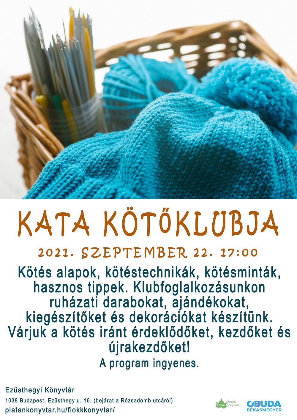 Kötés alapok, kötéstechnikák, kötésminták, hasznos tippek. Klubfoglalkozásunkon ruházati darabokat, ajándékokat, kiegészítőket és dekorációkat készítünk.