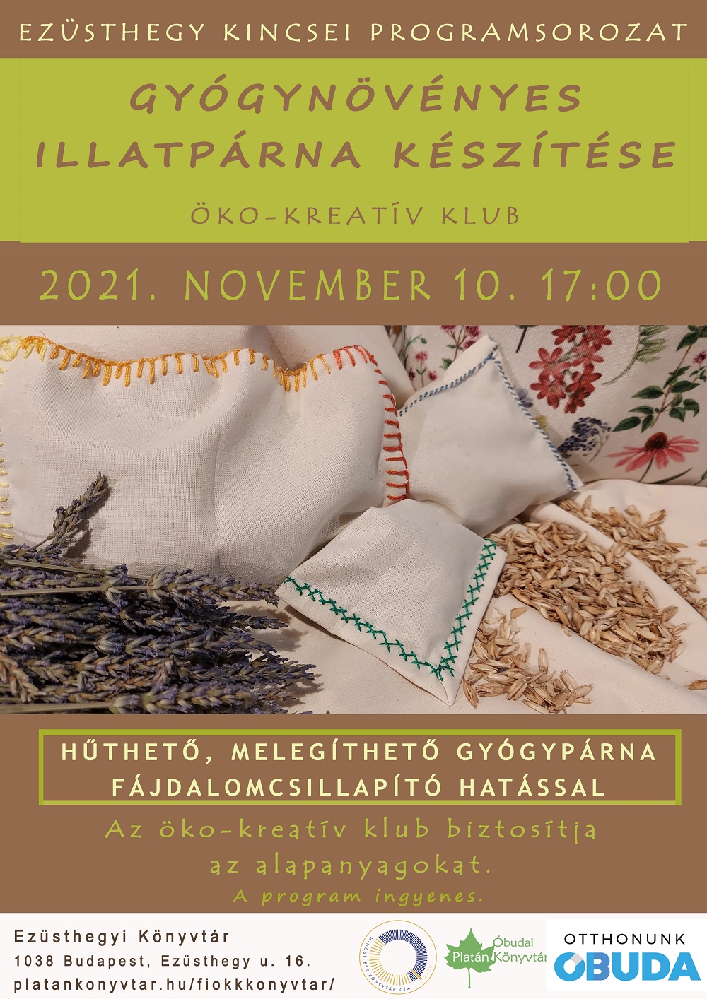 Az Ezüsthegy kincsei programsorozaton keretében megrendezett öko-kreatív klubban most mindenki elkészítheti saját gyógyító párnáját! Az alapanyagokat biztosítjuk.