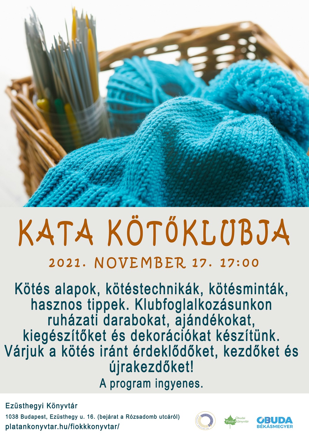 Kötés alapok, kötéstechnikák, kötésminták, hasznos tippek. Klubfoglalkozásunkon ruházati darabokat, ajándékokat, kiegészítőket és dekorációkat készítünk.