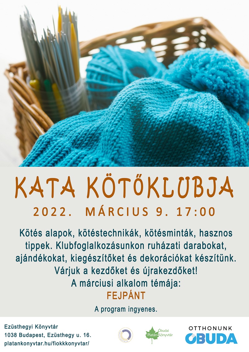 Klubfoglalkozásunkon ruházati darabokat, ajándékokat, kiegészítőket és dekorációkat készítünk. Várjuk a kötés iránt érdeklődőket, kezdőket és újrakezdőket!