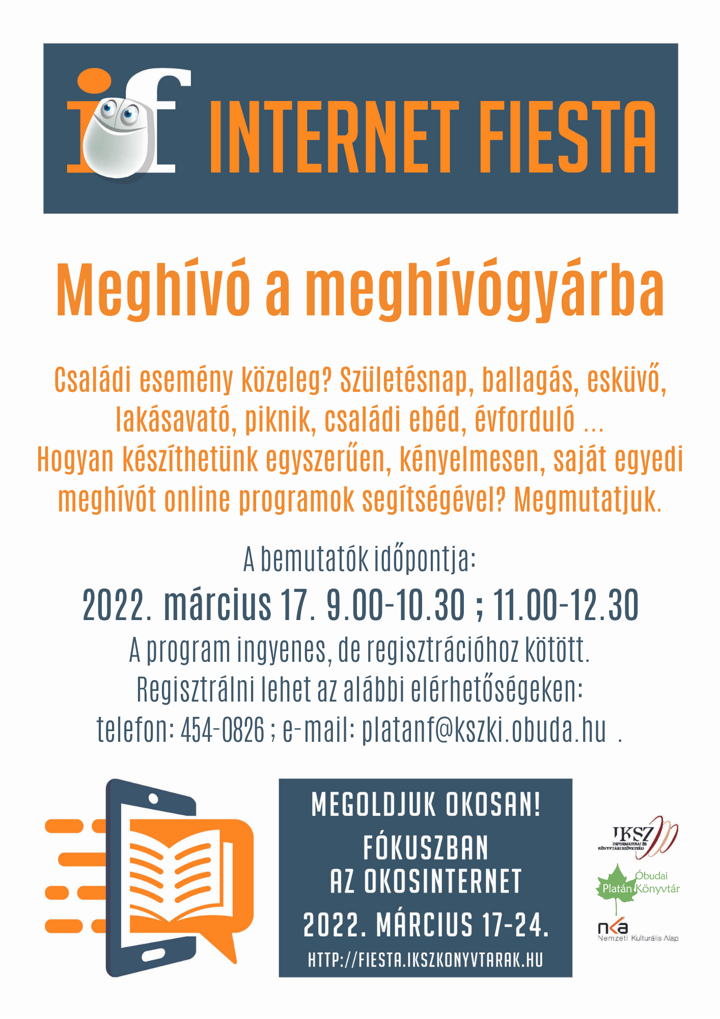 A programot az Internet Fiesta keretén belül rendezzük meg, regisztrálni lehet az alábbi elérhetőségeken: [email protected], +36 1 454 0826