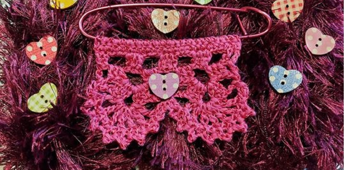 Horgolda: kitűző, bross