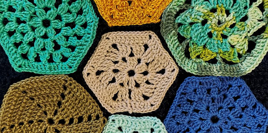Horgolda: méhsejtmintás alátét, kendő, táska, takaró
