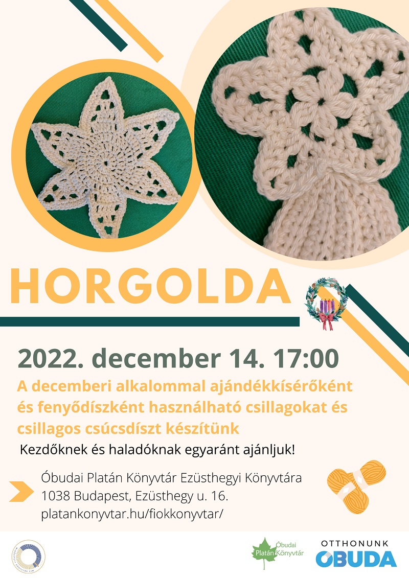 Klubfoglalkozásunkon horgolt kiegészítőket és dekorációkat készítünk. Várjuk a horgolni vágyó érdeklődőket, kezdőket és haladókat egyaránt!