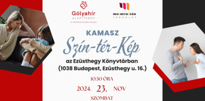 Mi ebben segítünk most! MOMENTÁN Társulat közreműködésével interaktív előadásra invitálunk. Az improvizáció, színjátszás és a humor eszközét segítségül hívva ismerhetitek fel saját erőforrásaitokat. Fedezzétek fel saját helytelenül rögzült viselkedési mintáitokat, amelyek elakadásokat okozhatnak a családon belüli kommunikációban. Töltsünk el együtt egy vidám, ráeszmélős szombat délelőttöt, hogy aztán otthon is kevésbé harcosan teljesen a mindennapok! A programon ingyenesen lehet részt venni a TESCO „Ön választ, mi segítünk” programja támogatásának köszönhetően, regisztráció azonban szükséges. Az eseményre maximum 30 résztvevőt tudunk fogadni, a részvételi lehetőséget a regisztrációk sorrendjében biztosítjuk.