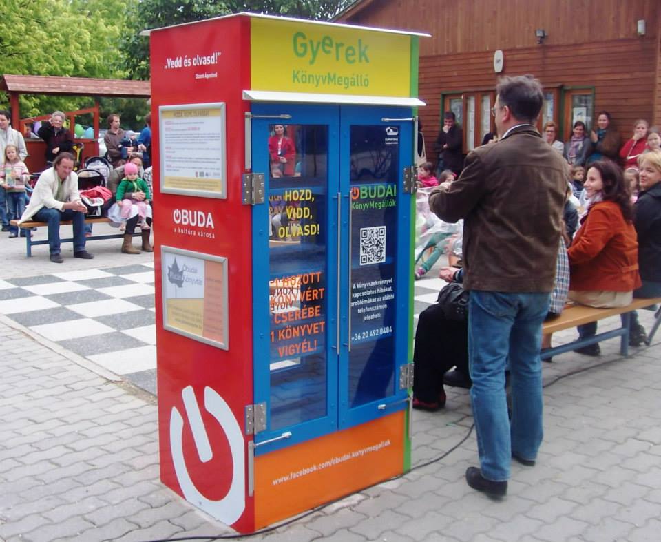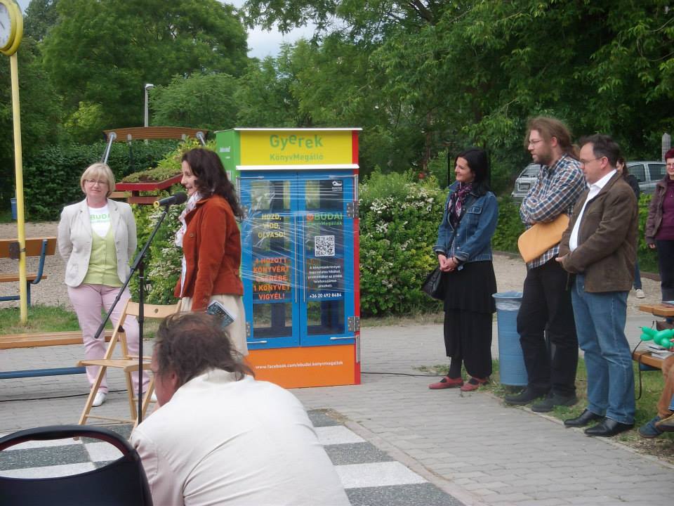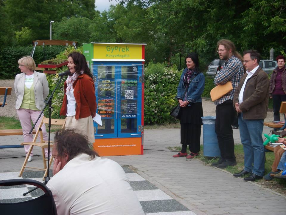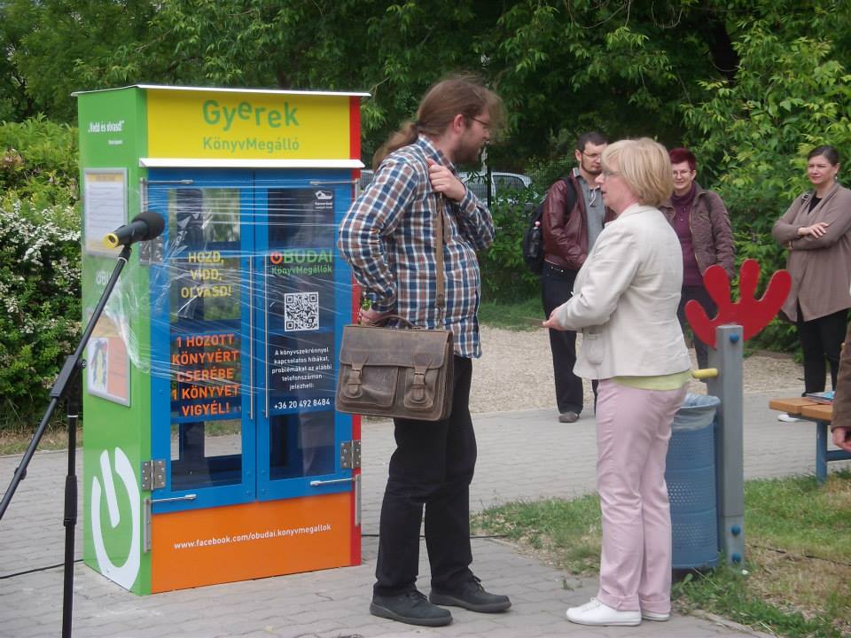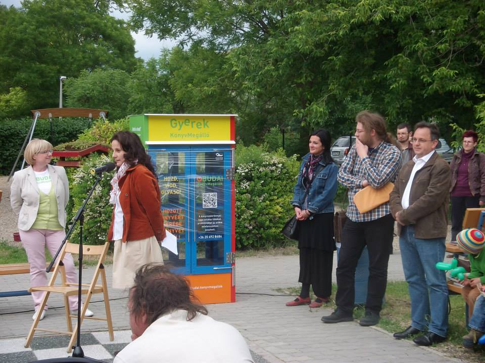 A Máltai játszótéren a Silvanus sétányon az első Gyerek KönyvMegállót Bús Balázs Óbuda-Békásmegyer polgármestere adja át. Az érdeklődőknek Varró Dániel a játszótéri könyvszekrény örökbefogadója olvas fel