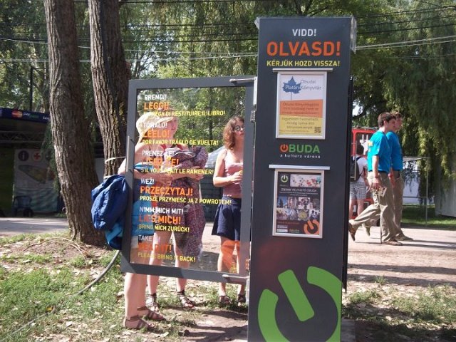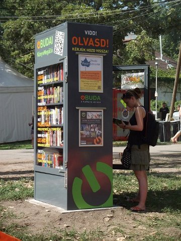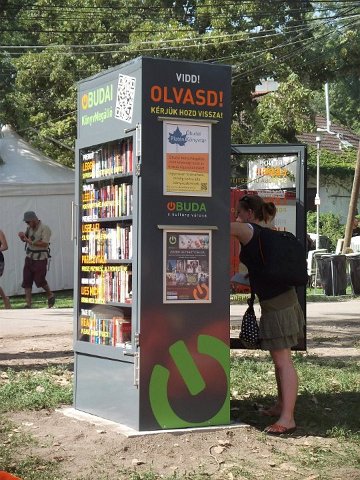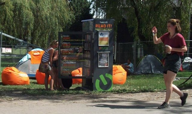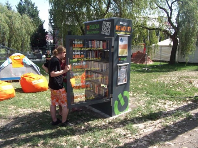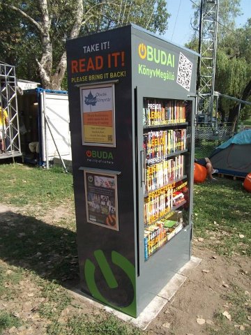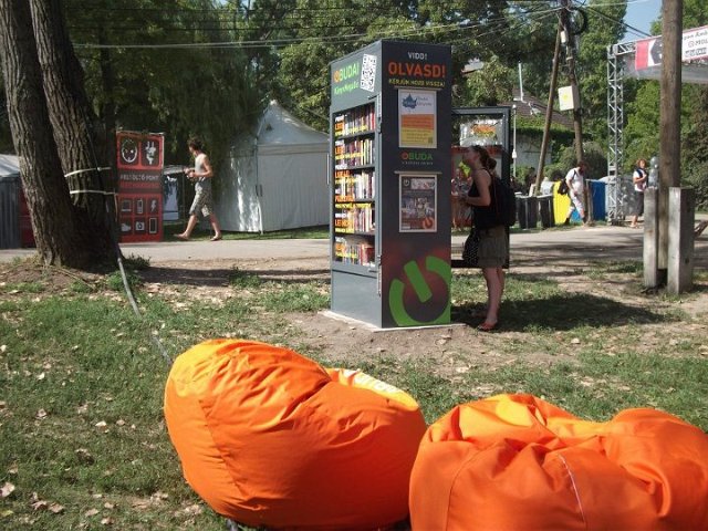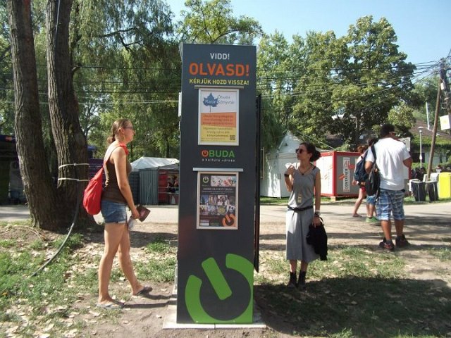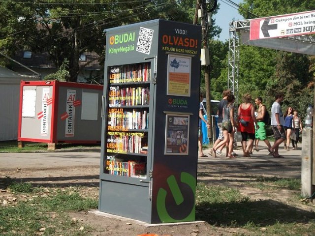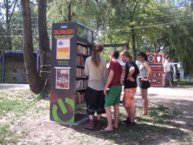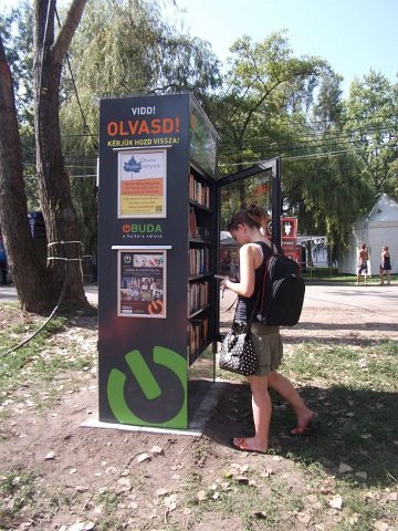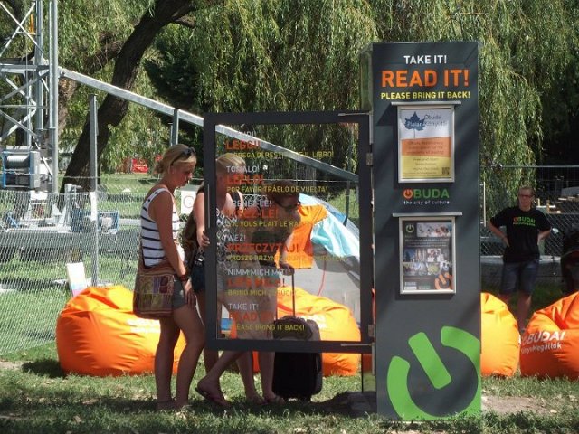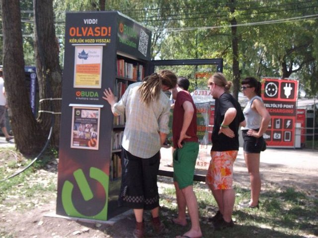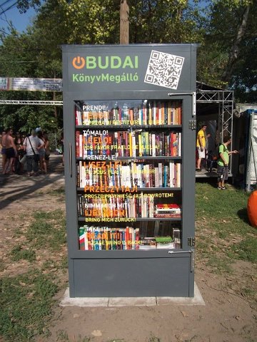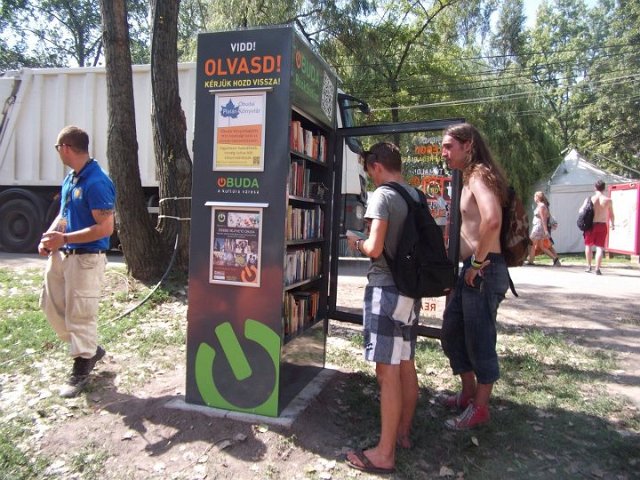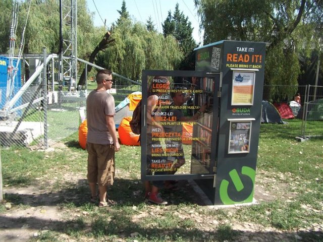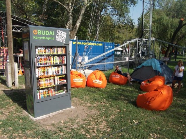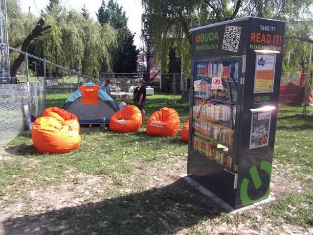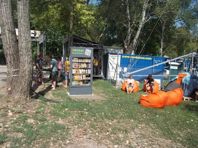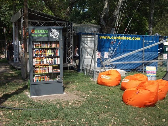 Vidd! Olvasd! Kérjük, hozd vissza! Óbudai KönyvMegálló a Sziget Fesztiválon. Az ingyenesen használható, éjjel-nappal nyitva álló könyvszekrényből bárki kiveheti a neki tetsző olvasmányt, amit az ott elhelyezett babzsákokon, vagy akár a sátrában elolvashat. Az Óbudai Platán Könyvtár a fesztivál ideje alatt a könyvállományt folyamatosan frissítette.