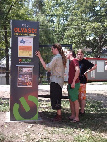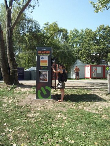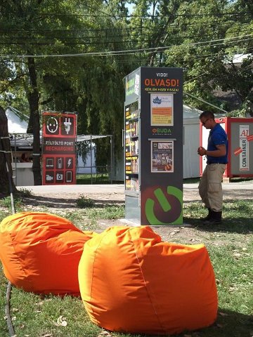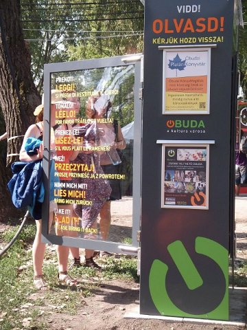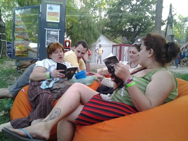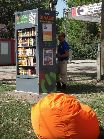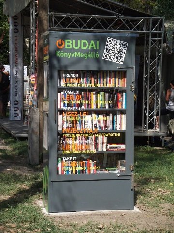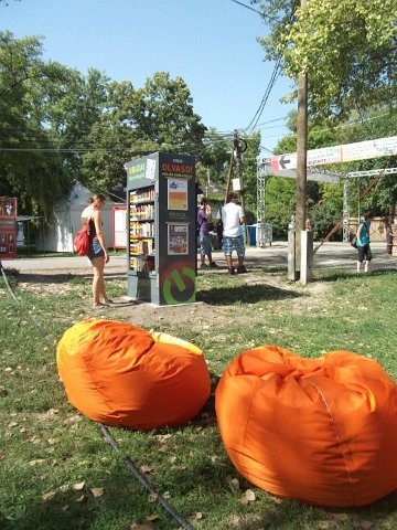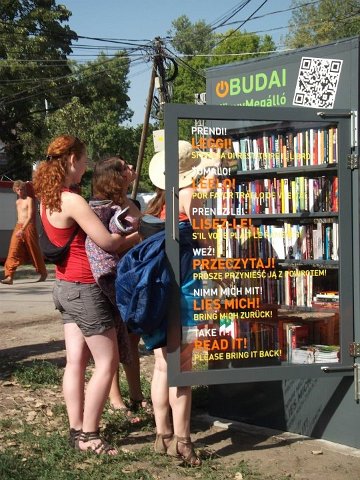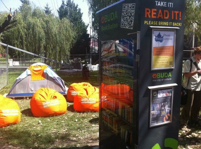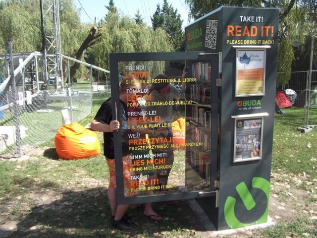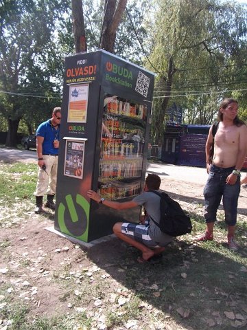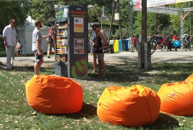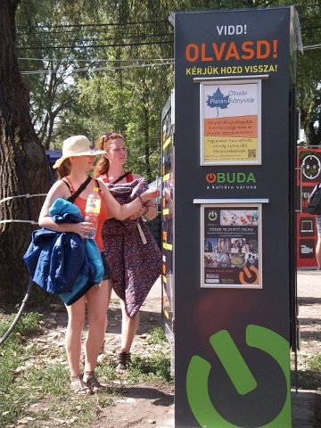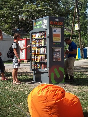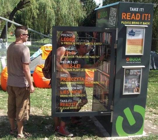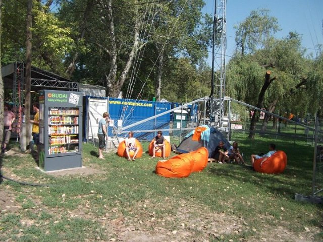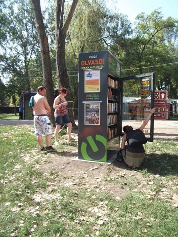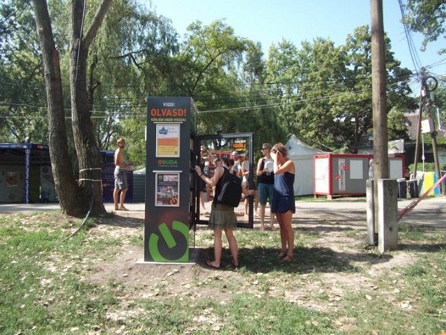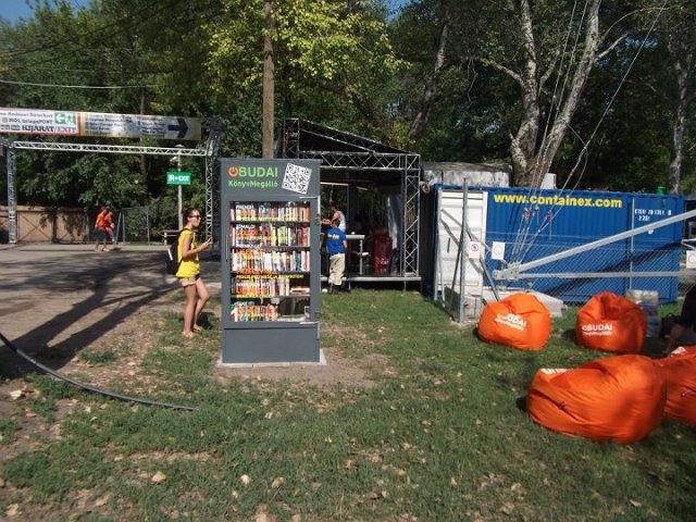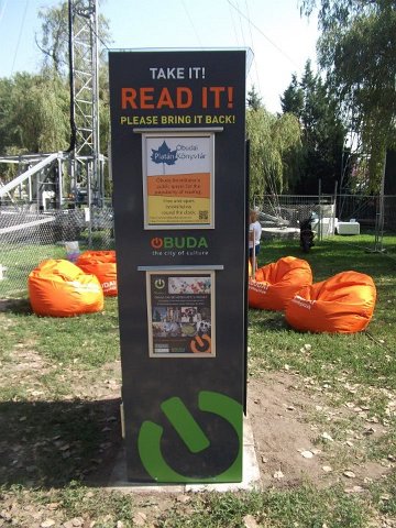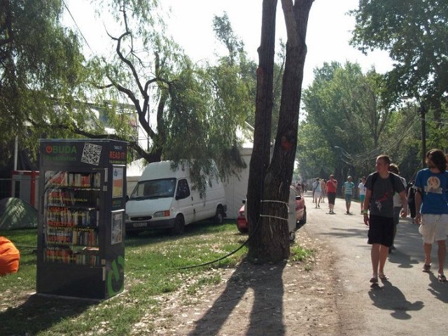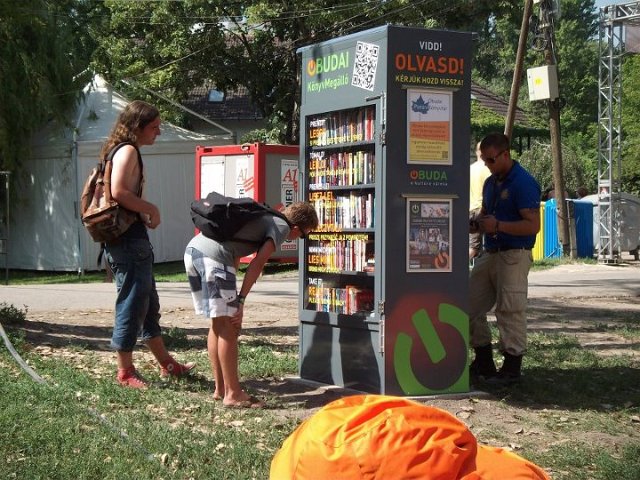 Vidd! Olvasd! Kérjük, hozd vissza! Óbudai KönyvMegálló a Sziget Fesztiválon. Az ingyenesen használható, éjjel-nappal nyitva álló könyvszekrényből bárki kiveheti a neki tetsző olvasmányt, amit az ott elhelyezett babzsákokon, vagy akár a sátrában elolvashat. Az Óbudai Platán Könyvtár a fesztivál ideje alatt a könyvállományt folyamatosan frissítette.