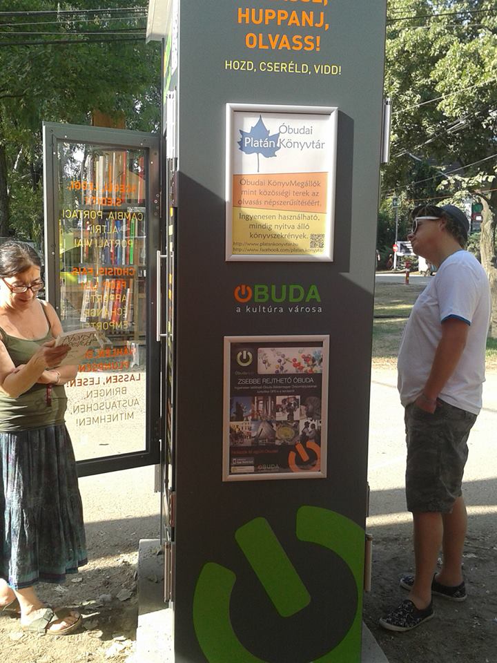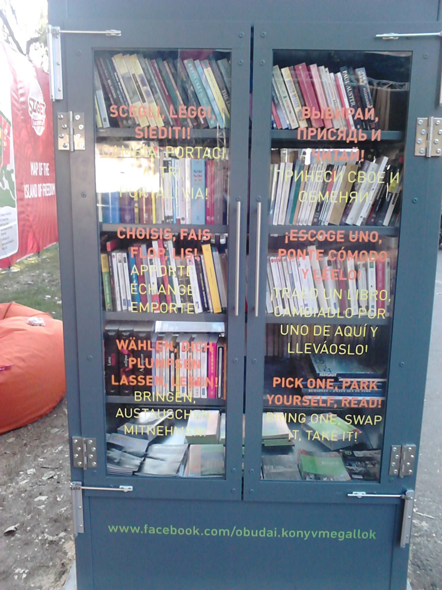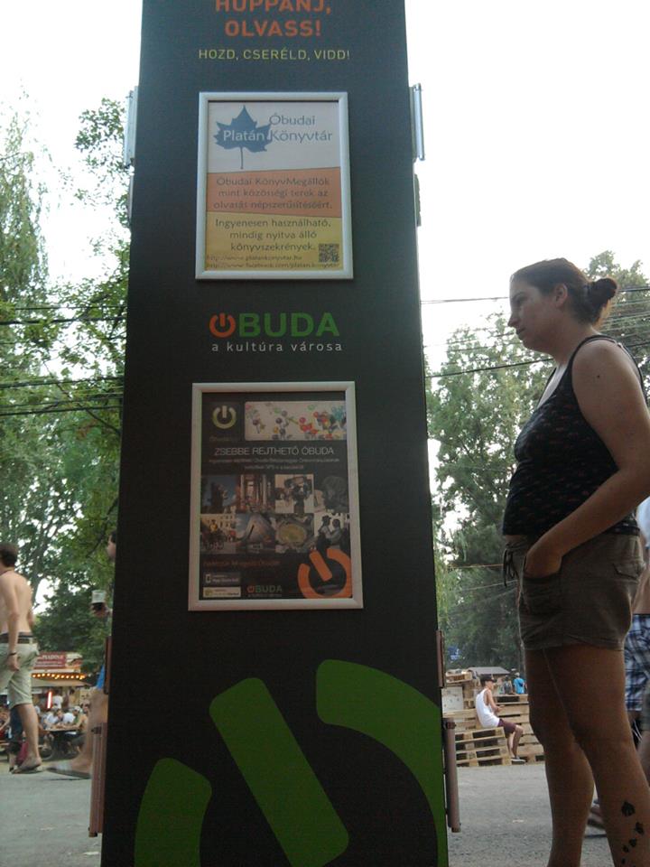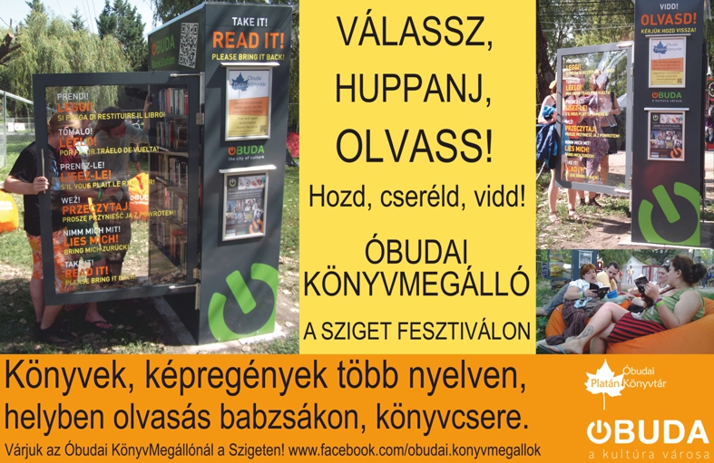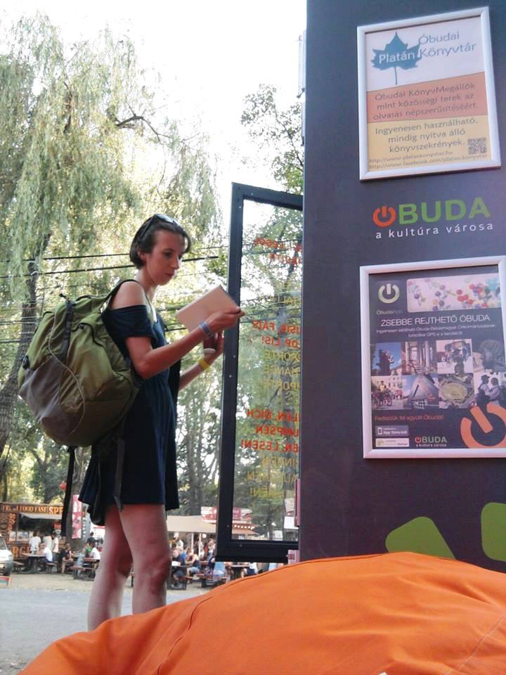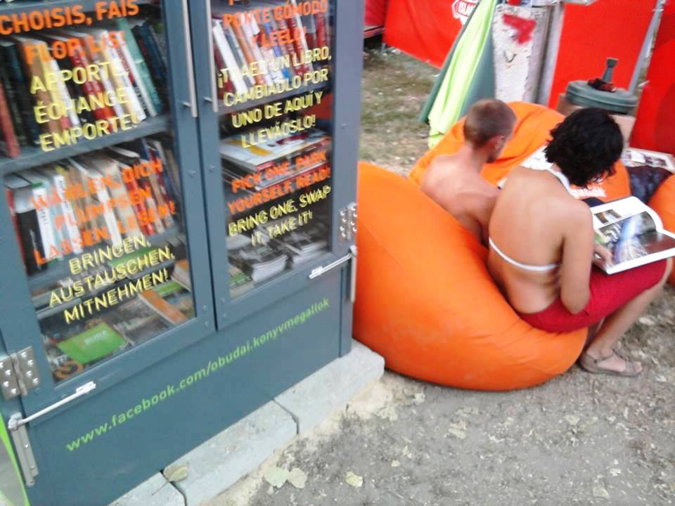 Az ingyenesen használható, éjjel-nappal nyitva álló könyvszekrényből bárki kiveheti a neki tetsző olvasmányt, amit az ott elhelyezett babzsákokon elolvashat. Hozott könyvért cserébe másikat választhat. Az Óbudai Platán Könyvtár a fesztivál ideje alatt a könyvállományt folyamatosan frissíti. A kínálat: kortárs és klasszikus, szórakoztató és komolyabb magyar, angol, német, és egyéb nyelven kiadott könyvek, valamint Óbudáról szóló kiadványok.