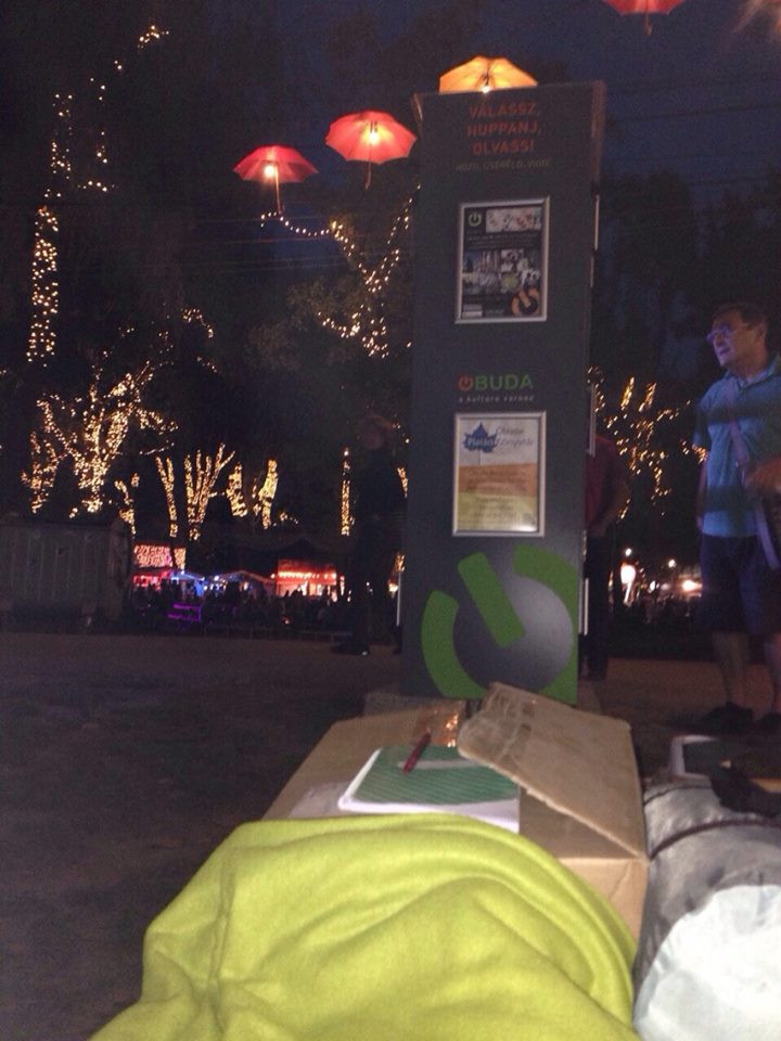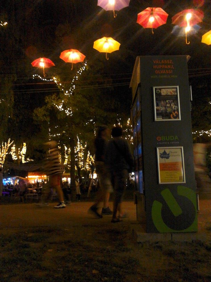 Az ingyenesen használható, éjjel-nappal nyitva álló könyvszekrényből bárki kiveheti a neki tetsző olvasmányt, amit az ott elhelyezett babzsákokon elolvashat. Hozott könyvért cserébe másikat választhat. Az Óbudai Platán Könyvtár a fesztivál ideje alatt a könyvállományt folyamatosan frissíti. A kínálat: kortárs és klasszikus, szórakoztató és komolyabb magyar, angol, német, és egyéb nyelven kiadott könyvek, valamint Óbudáról szóló kiadványok.