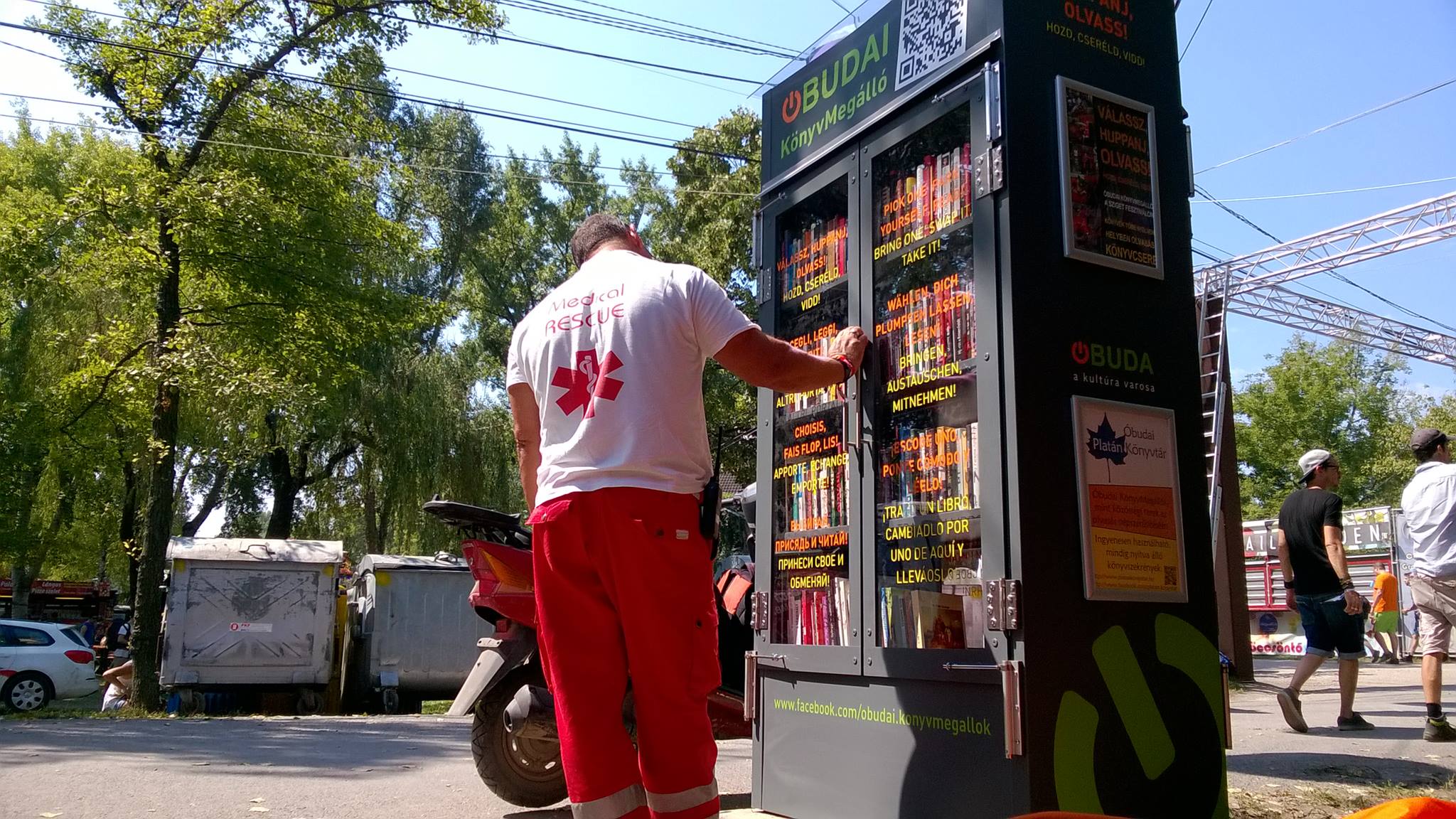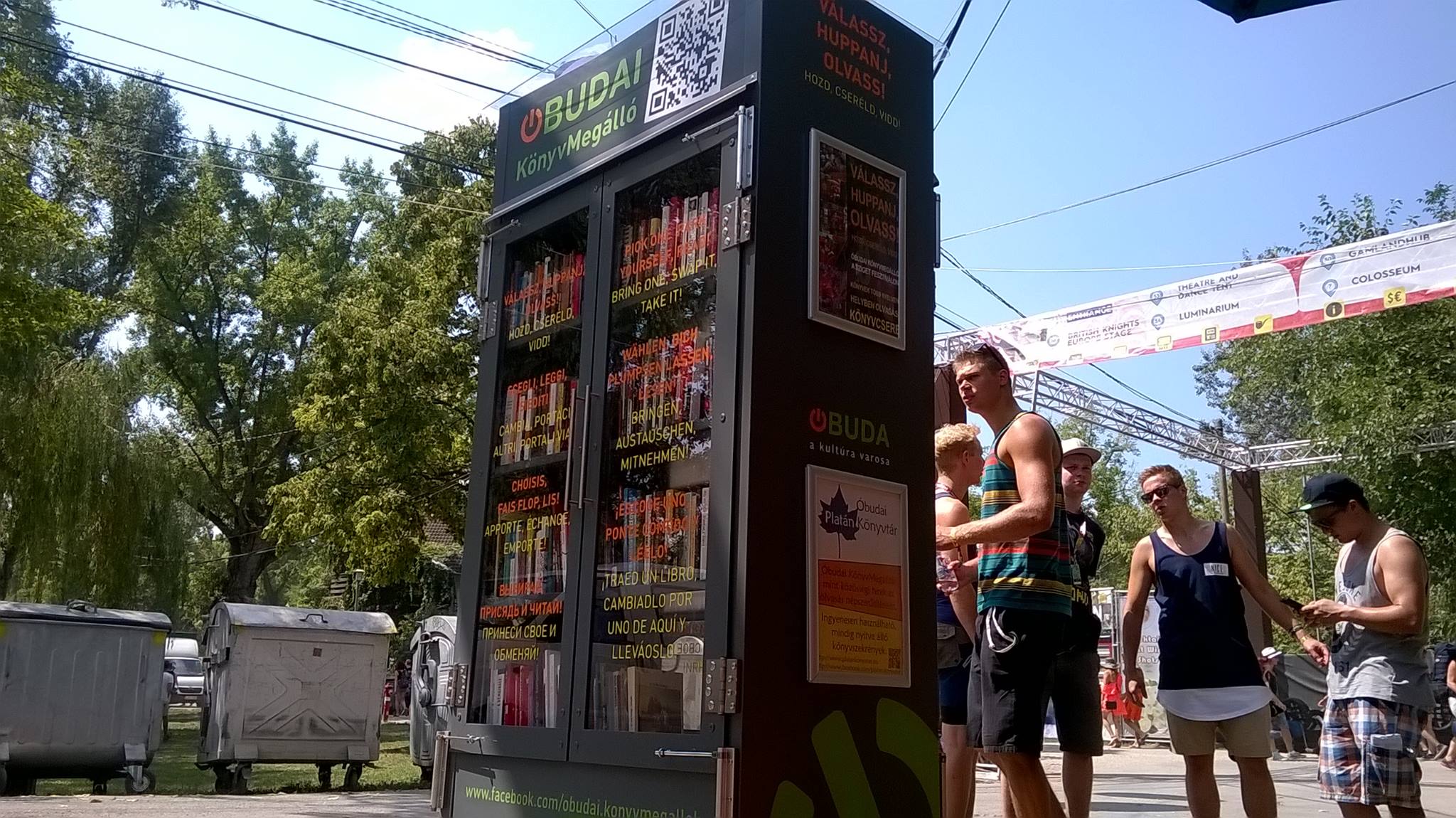 Az ingyenesen használható, éjjel-nappal nyitva álló könyvszekrényből bárki kiveheti a neki tetsző olvasmányt, amit az ott elhelyezett babzsákokon elolvashat. Hozott könyvért cserébe másikat választhat. Az Óbudai Platán Könyvtár a fesztivál ideje alatt a könyvállományt folyamatosan frissíti. A kínálat: kortárs és klasszikus, szórakoztató és komolyabb magyar, angol, német, és egyéb nyelven kiadott könyvek, valamint Óbudáról szóló kiadványok.