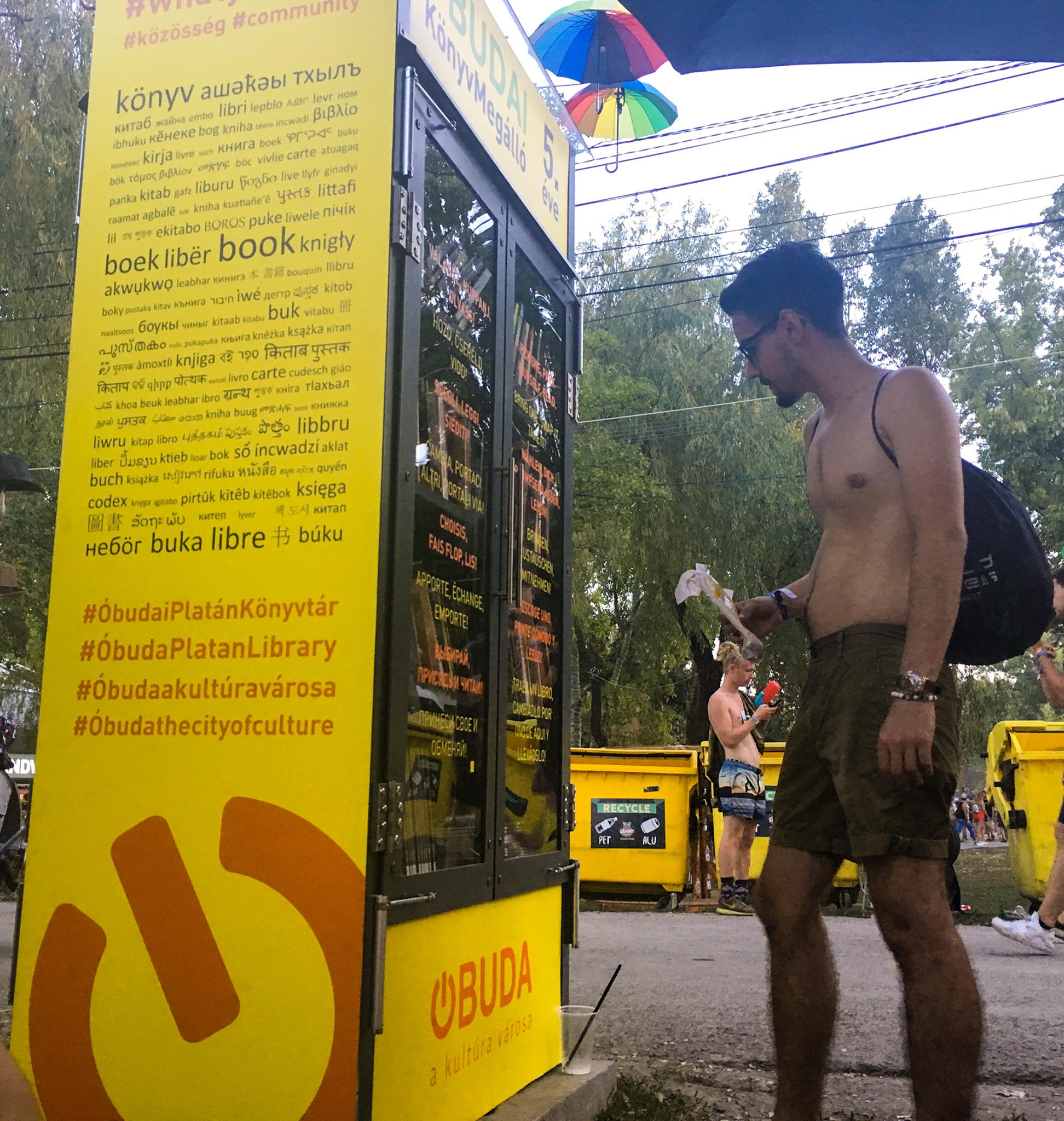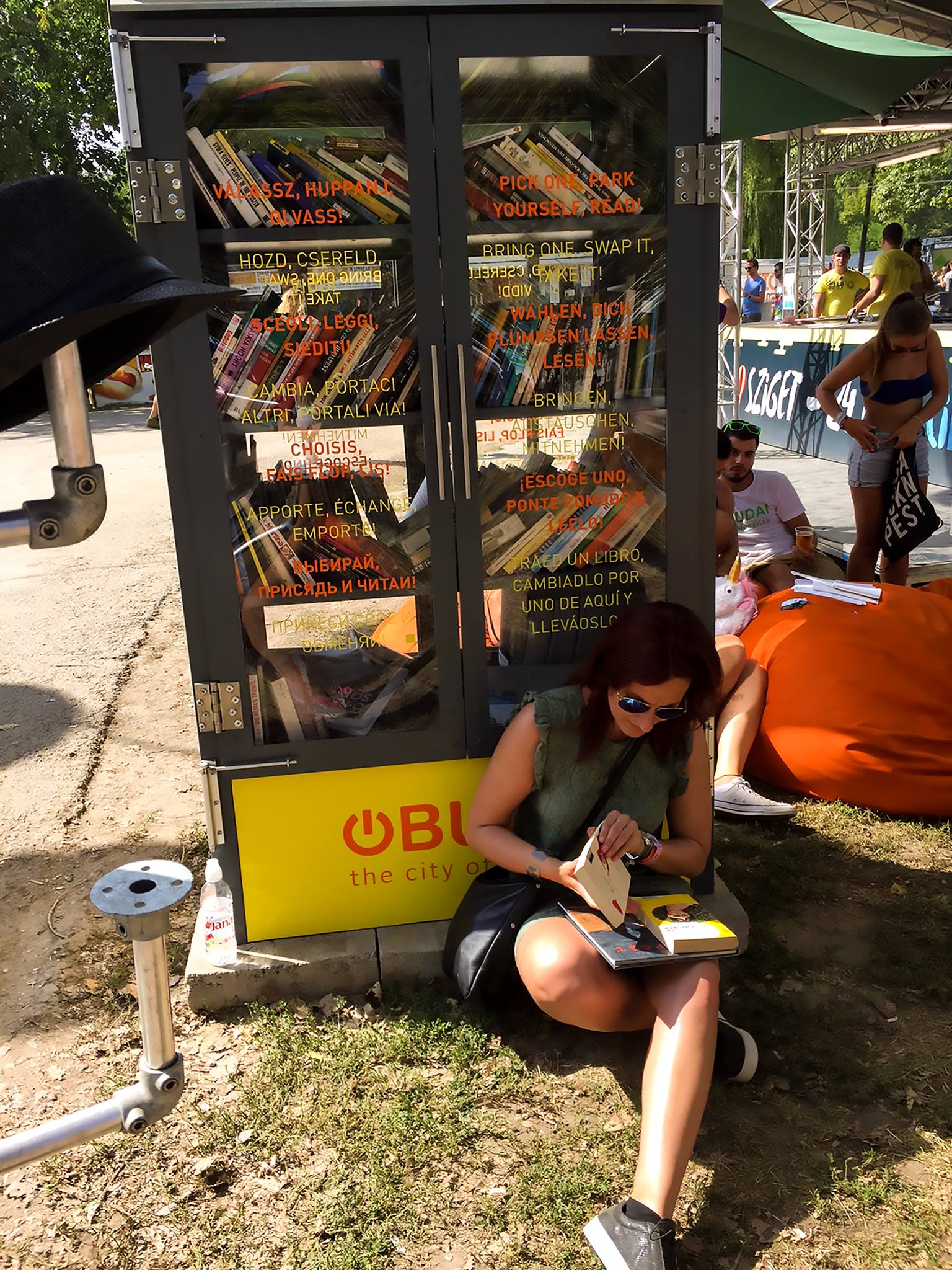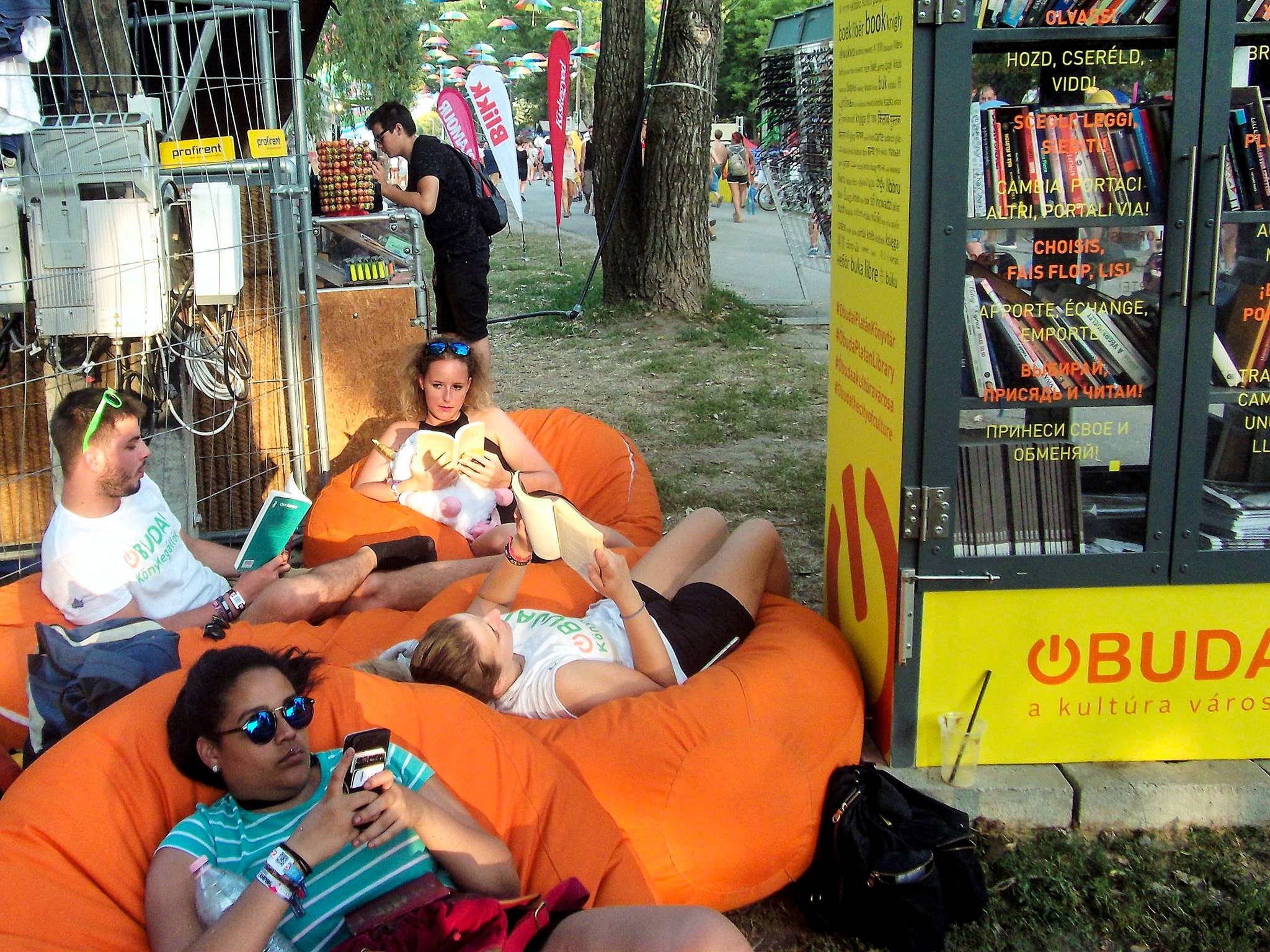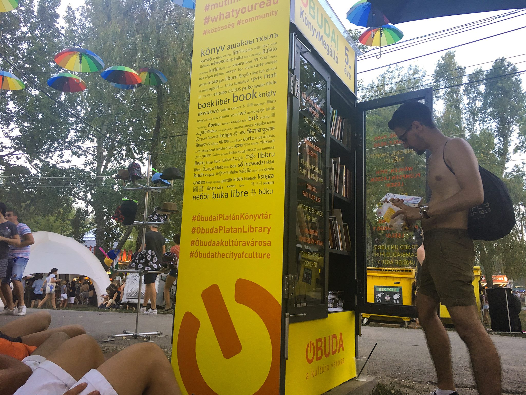 Az ingyenesen használható, éjjel-nappal nyitva álló könyvszekrényből bárki kiveheti a neki tetsző olvasmányt, amit az ott elhelyezett babzsákokon elolvashat. Hozott könyvért cserébe másikat választhat. Az Óbudai Platán Könyvtár a fesztivál ideje alatt a könyvállományt folyamatosan frissíti. A kínálat: kortárs és klasszikus, szórakoztató és komolyabb magyar, angol, német, és egyéb nyelven kiadott könyvek, valamint Óbudáról szóló kiadványok.
